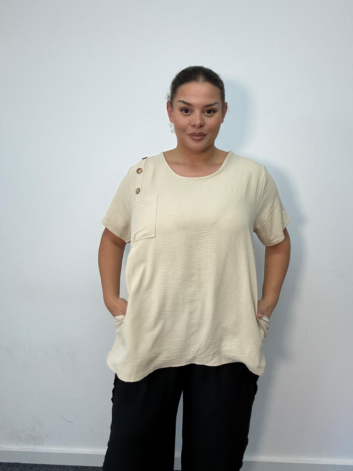 Plus Size Beige Button Shoulder Pocket Oversized Top x 2, 3 & 5 Pack Options