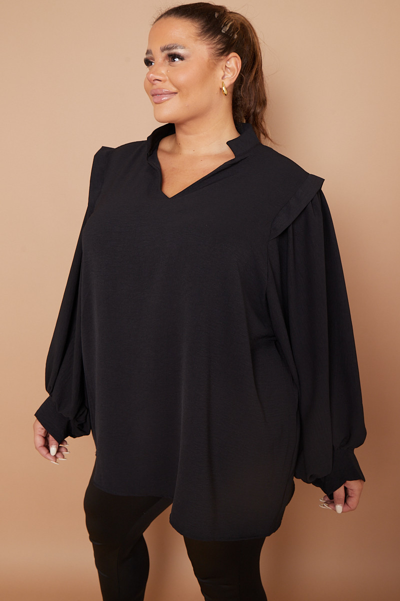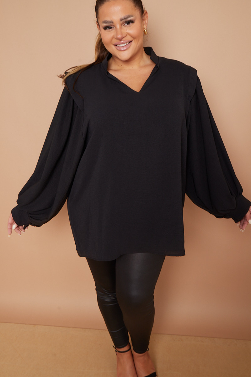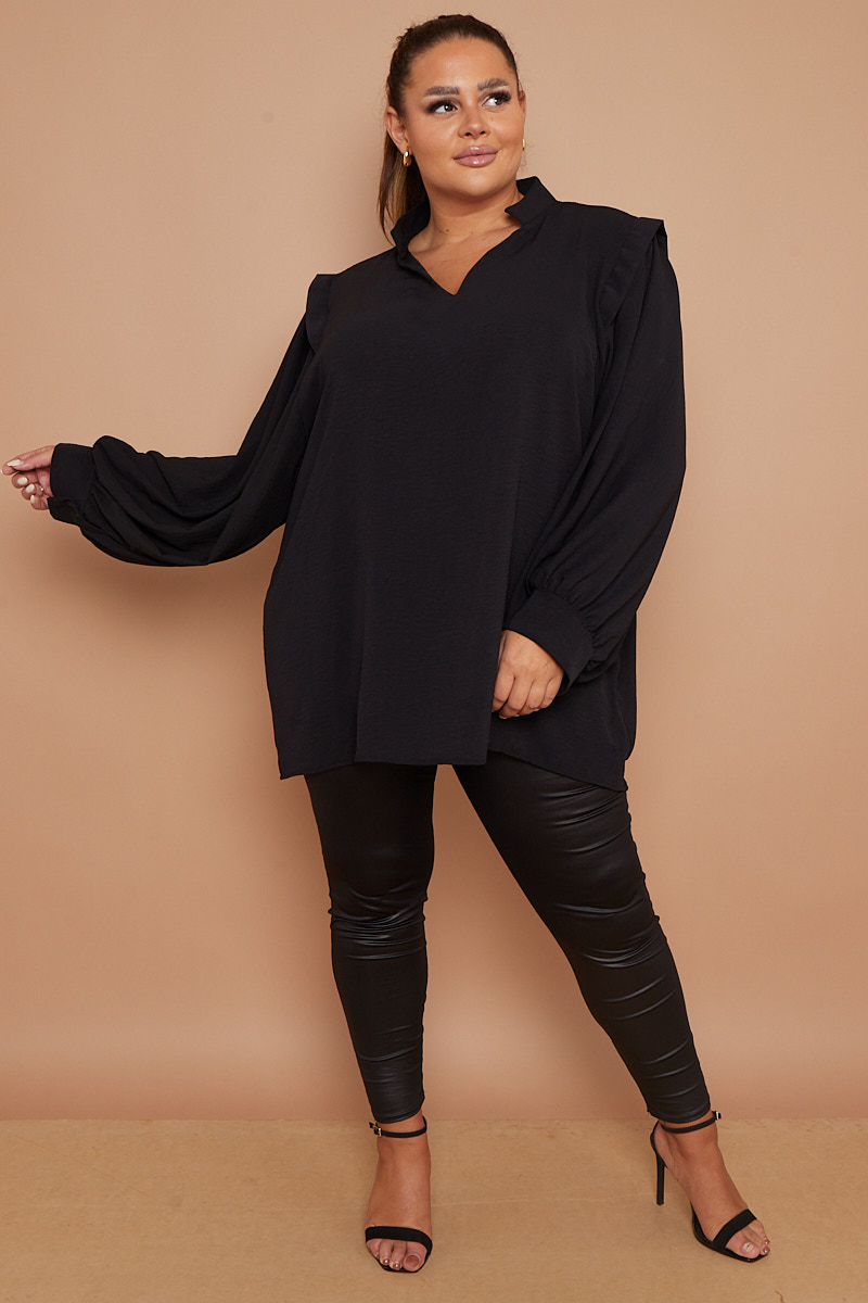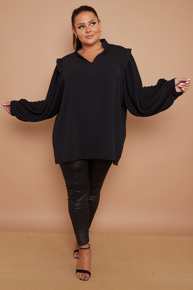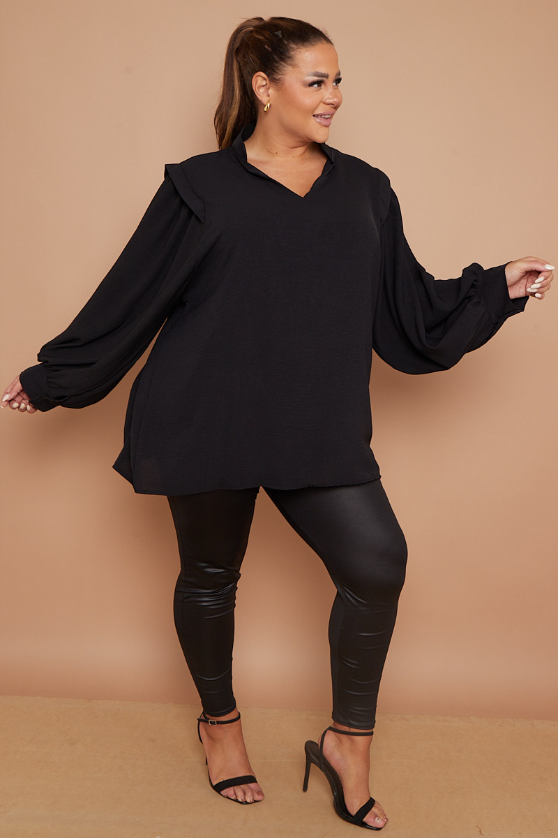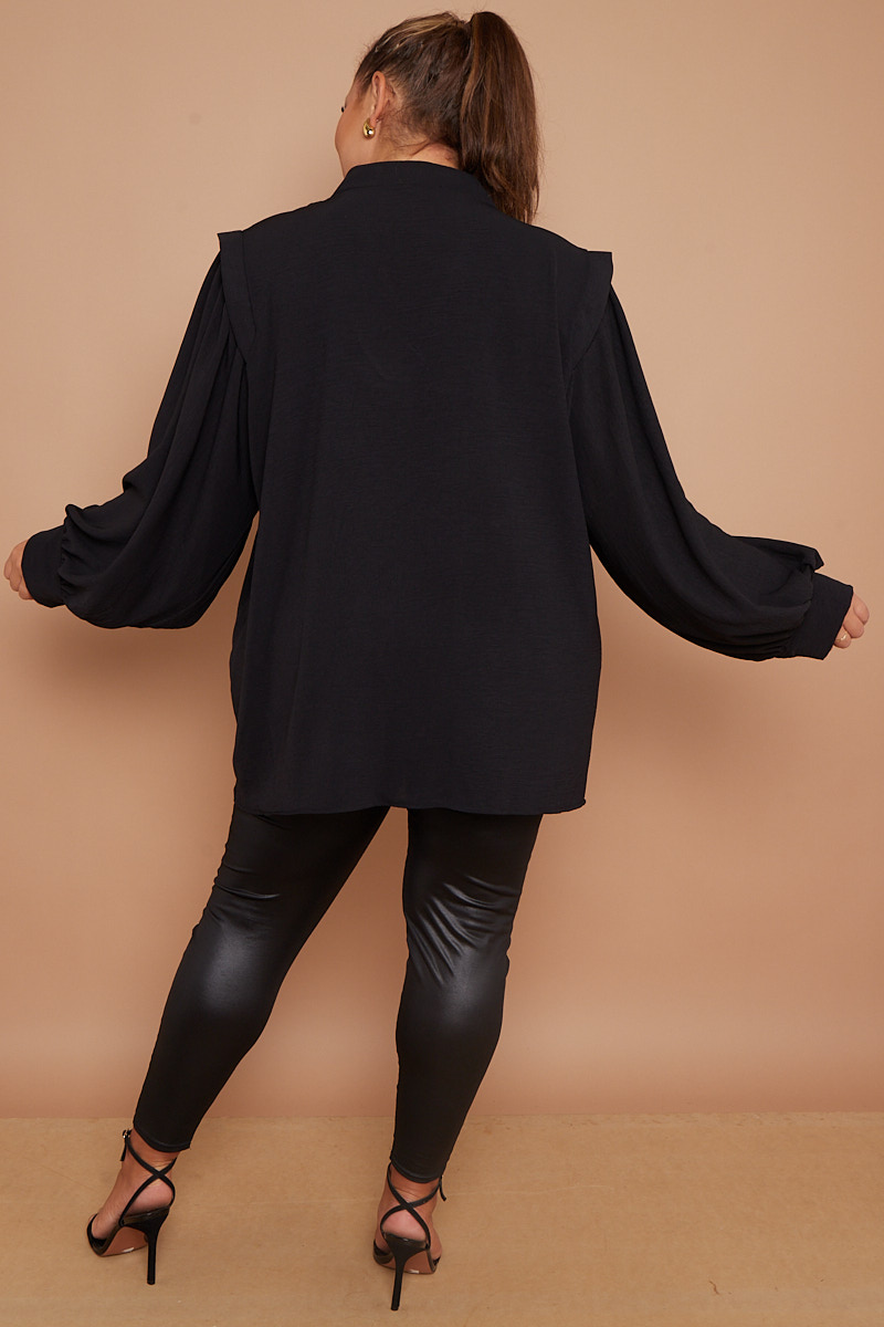 Plus Size Black Collar Detail Long Sleeve Blouse x 5
