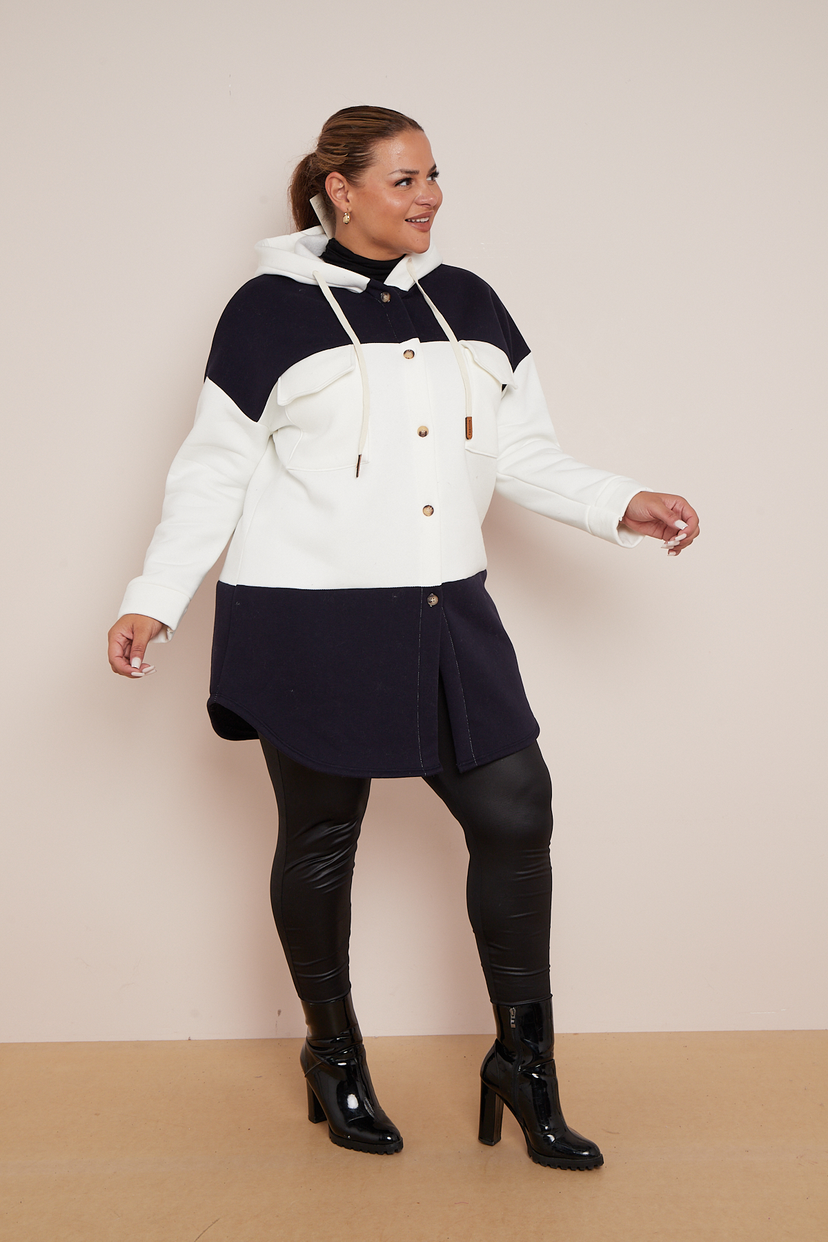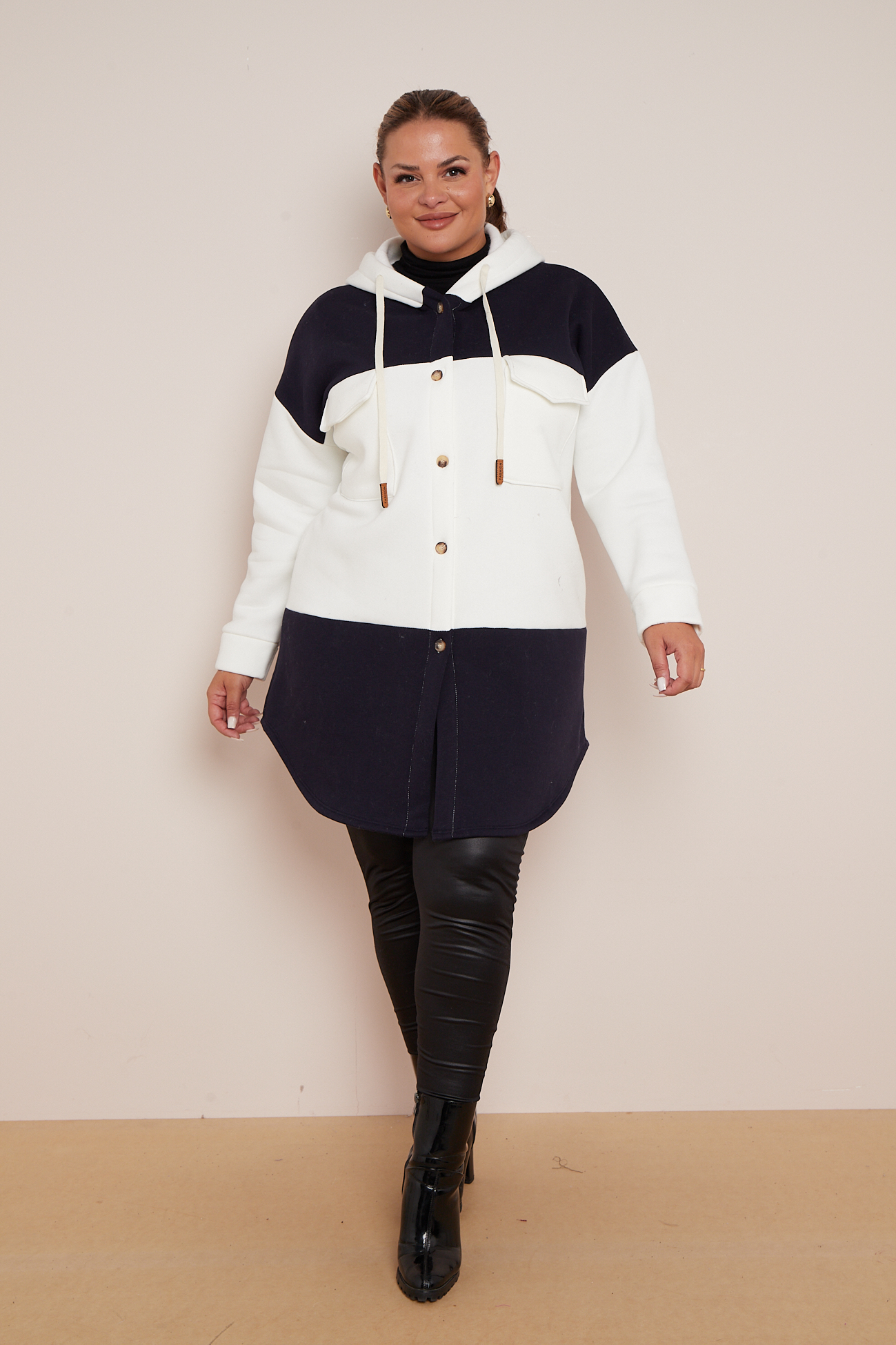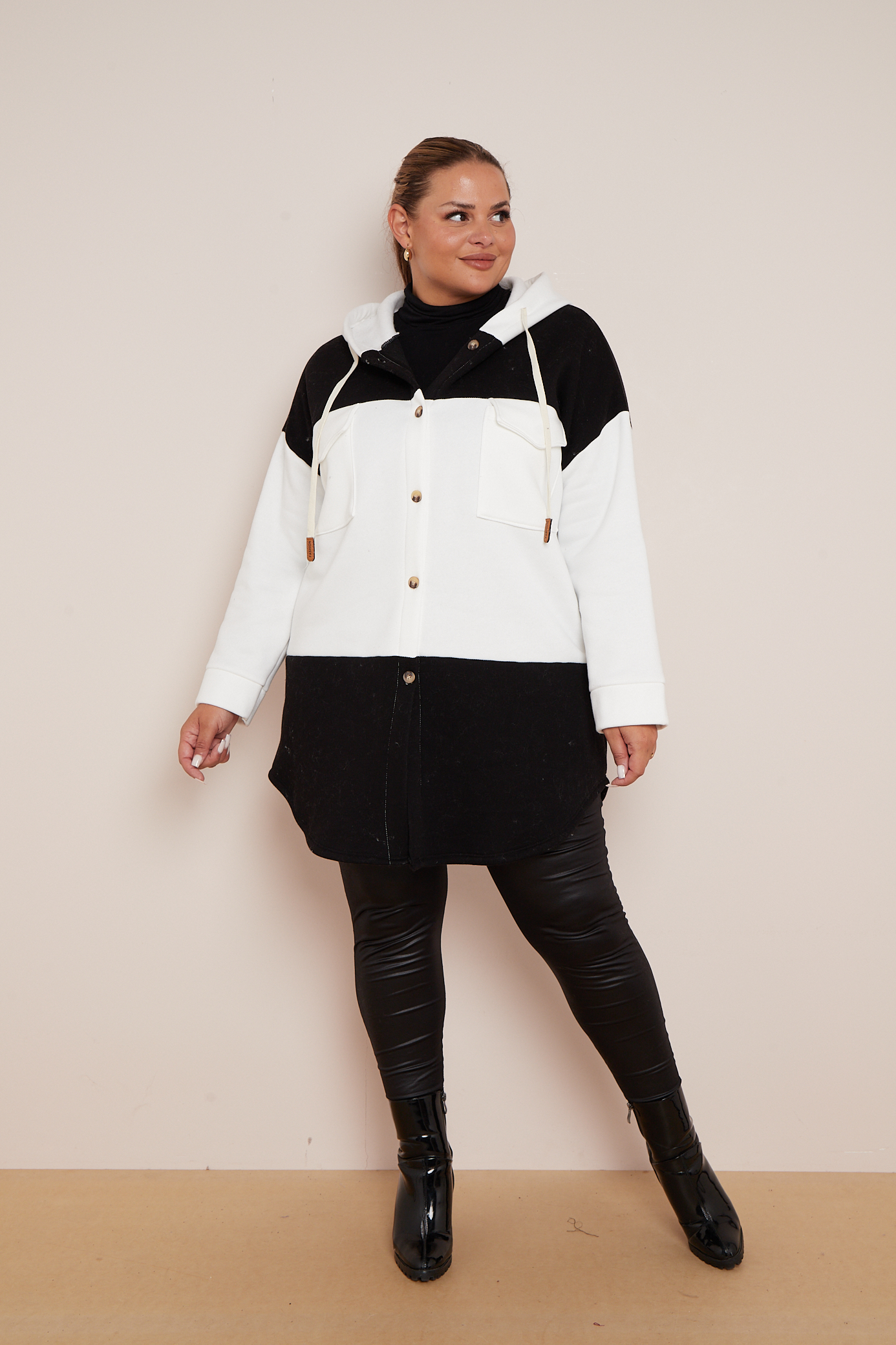 Plus Size Black Colourblock Hooded Shacket With Pockets x 5
