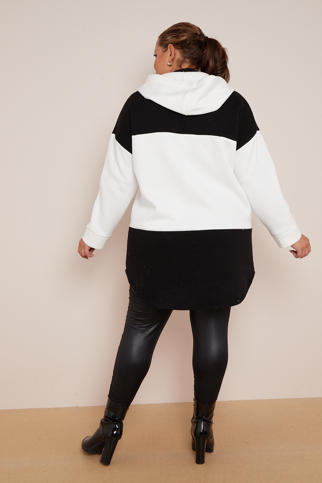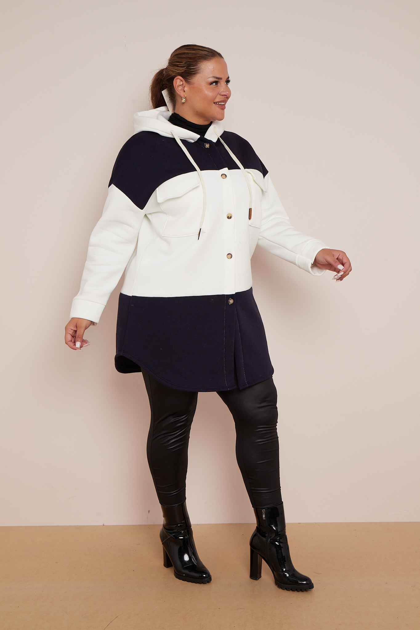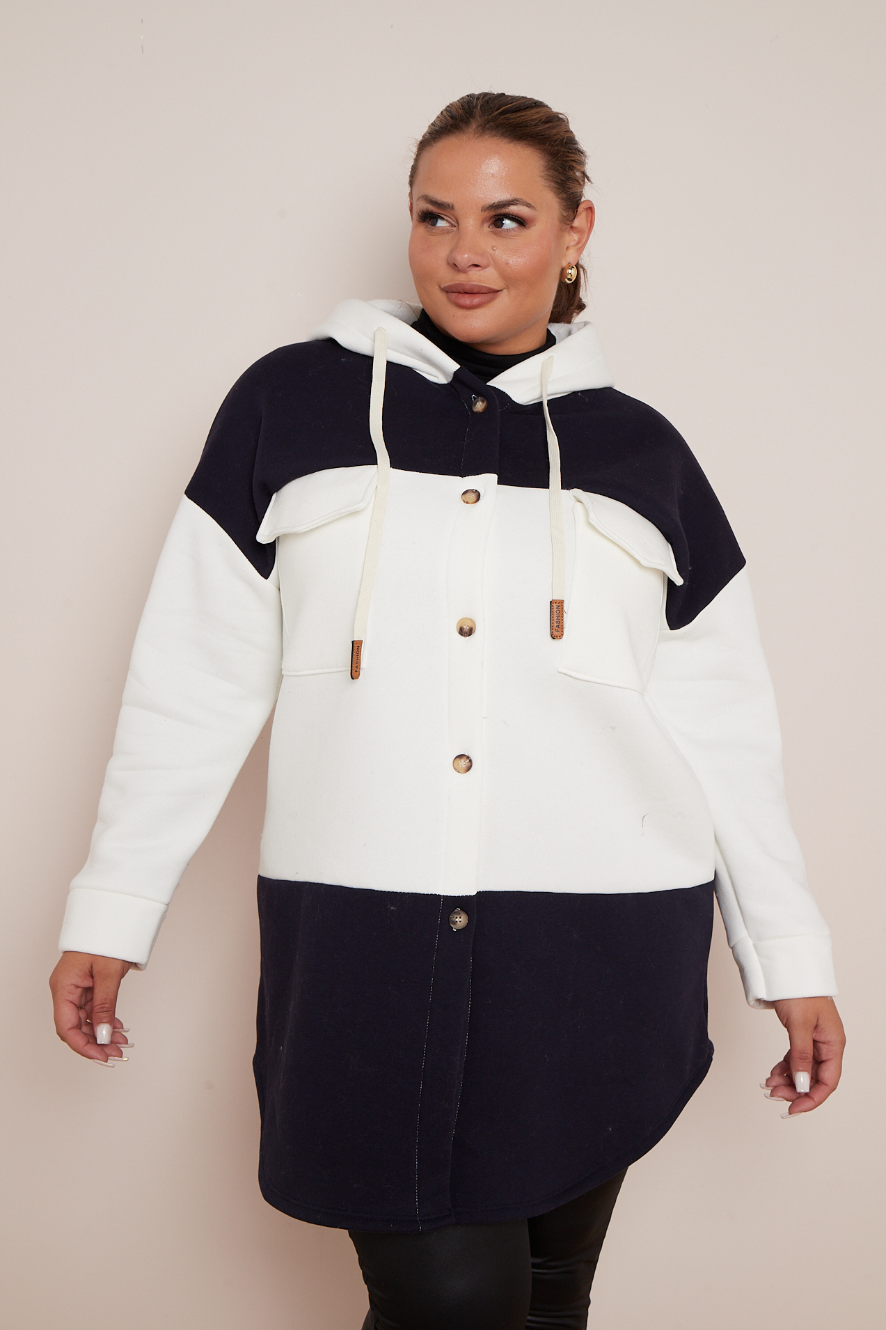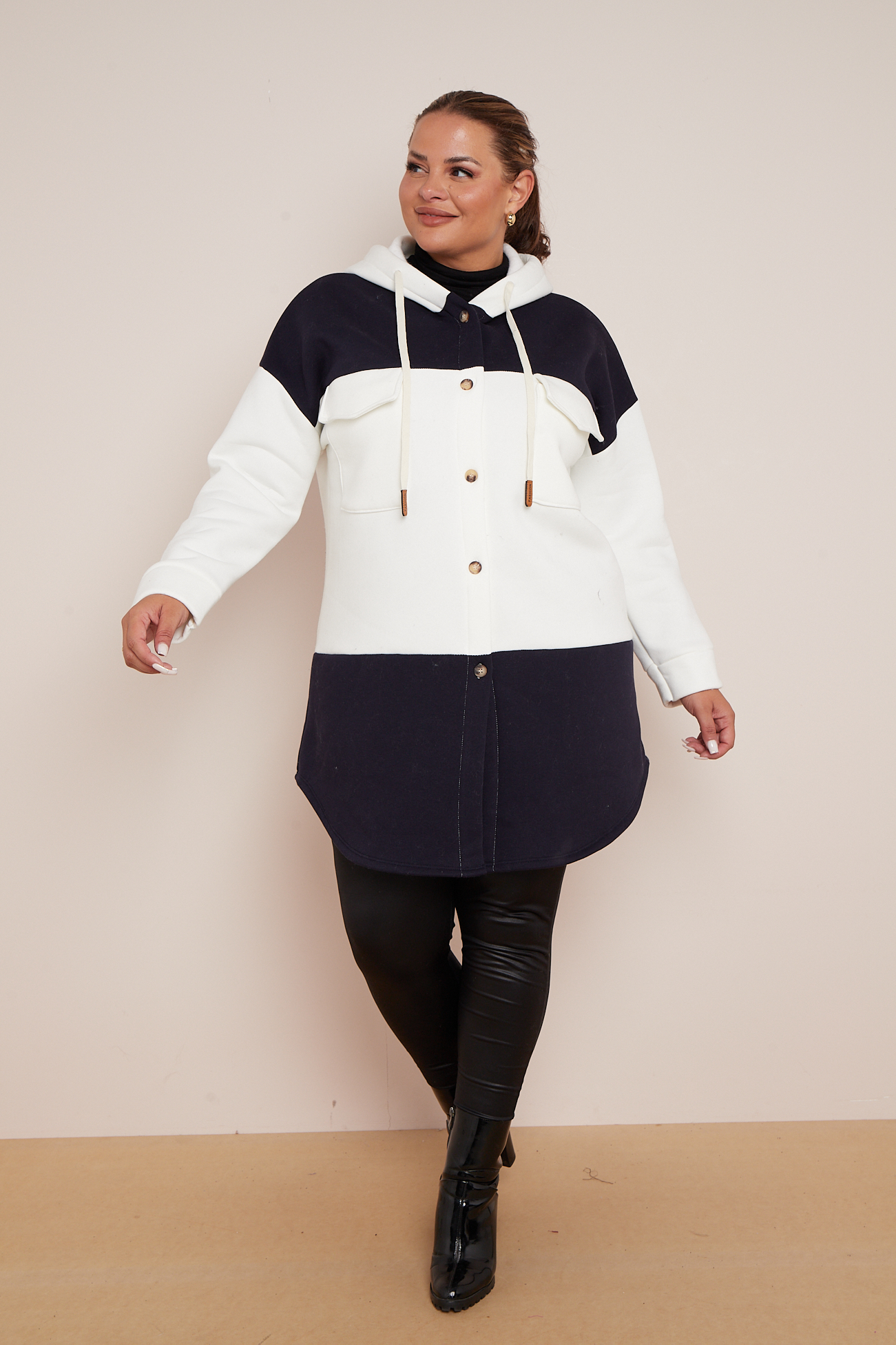 Plus Size Black Colourblock Hooded Shacket With Pockets x 5