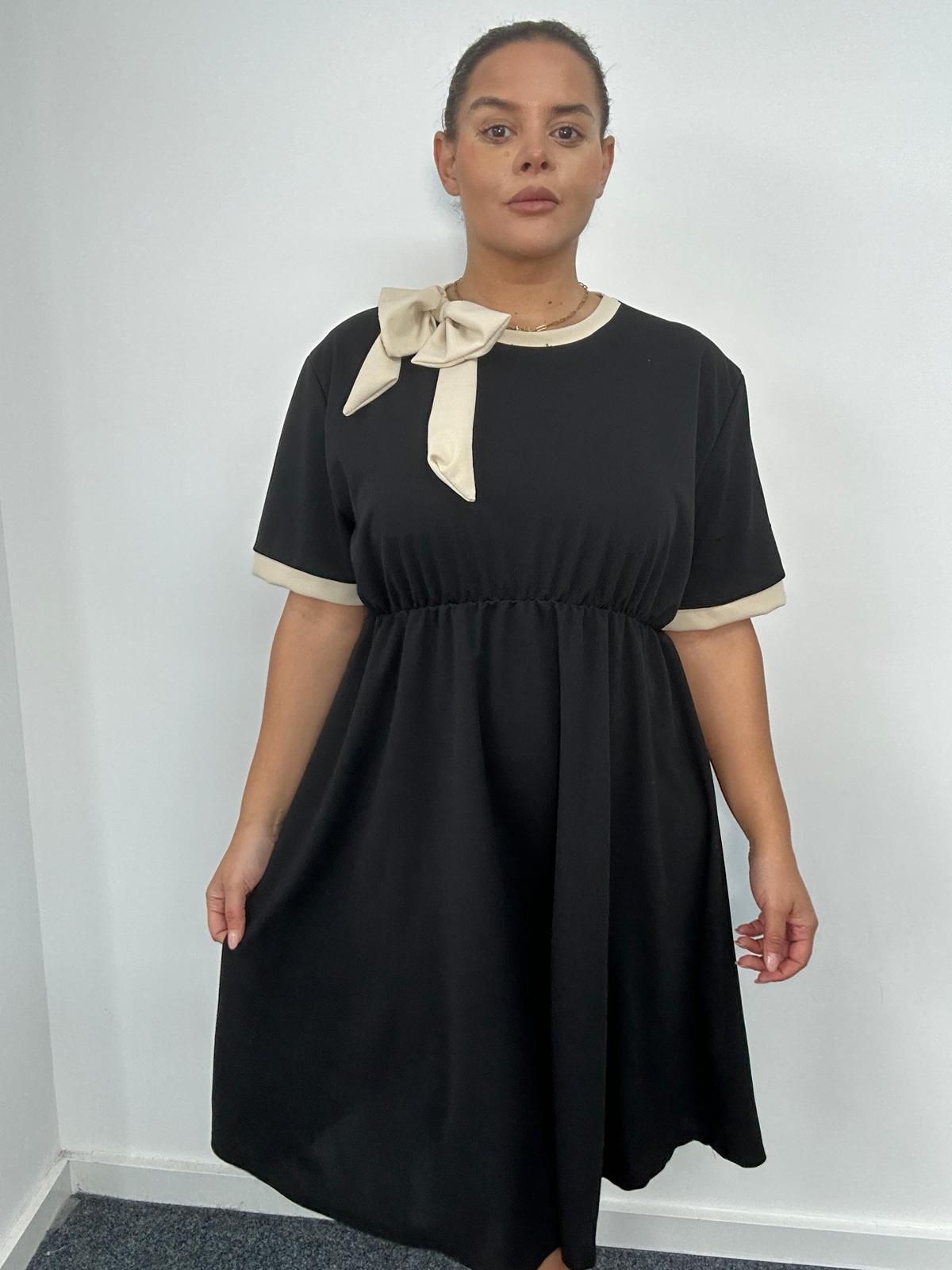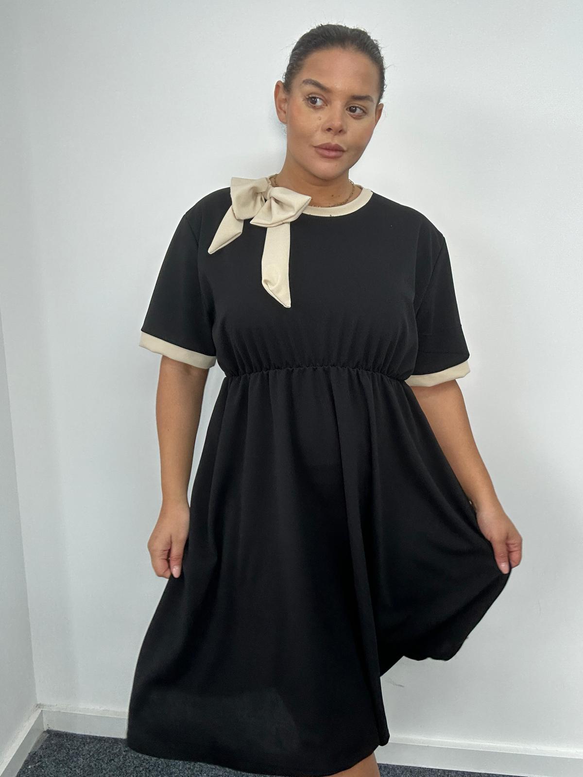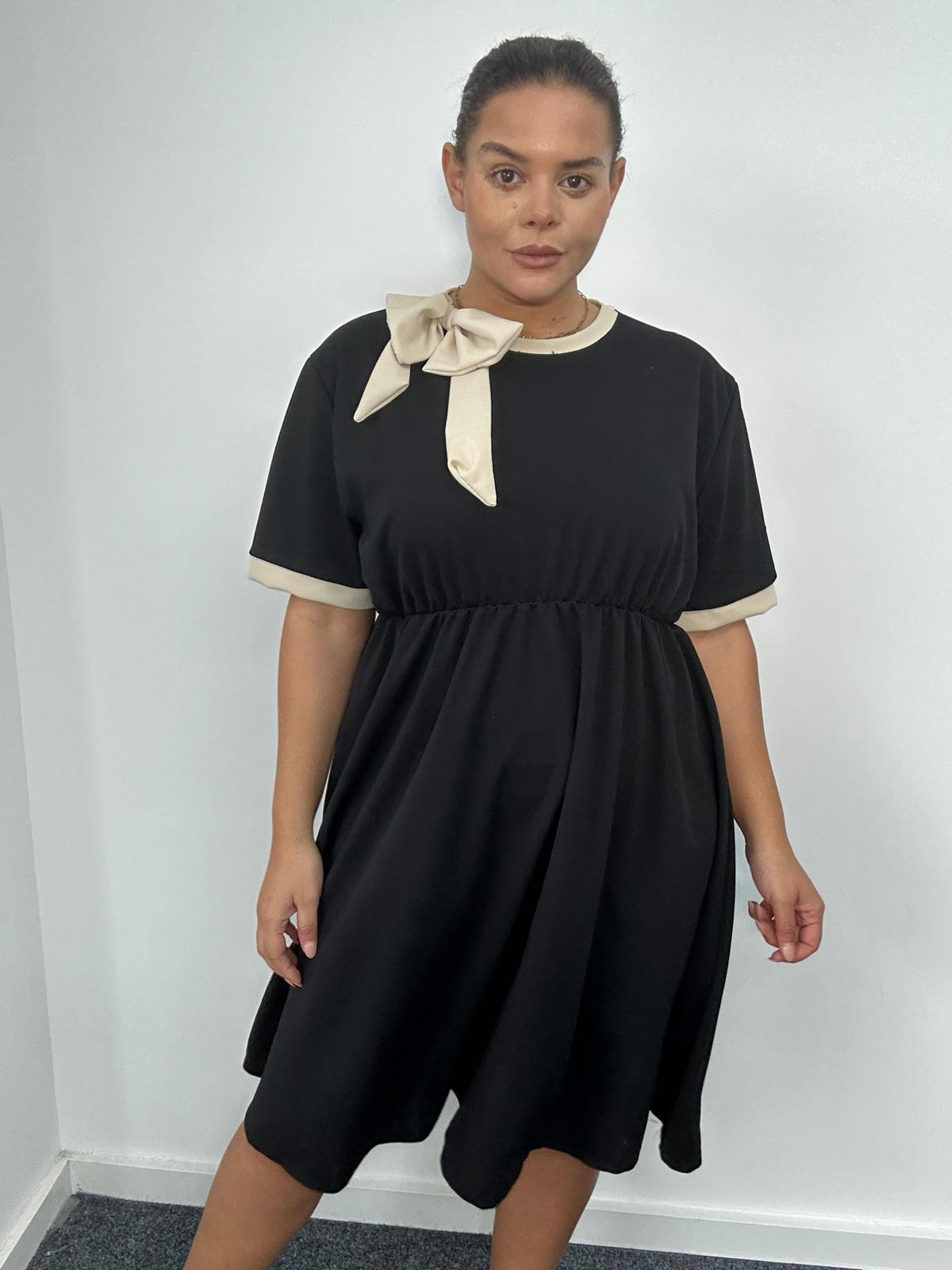 Add a touch of elegance to your boutique collection with this Plus Size Contrast Pussybow Dress. Designed with a flattering elasticated waist and softly draped A-line skirt, this dress offers both comfort and sophistication. The contrasting bow neck and sleeve trim elevate the look, giving it a refined finish that’s perfect for both daywear and smart occasions. Ideal for boutiques and online stores catering to chic, modern customers.
