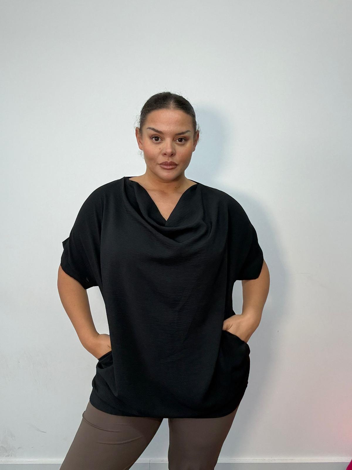 The Drape Neck Pocket Oversized Top is a versatile curve staple designed to combine comfort with effortless polish. Cut in a relaxed, oversized silhouette, it drapes smoothly over the body, offering a flattering and easy fit for plus size shapes. Featuring a soft drape neckline and practical front pockets, this top balances relaxed styling with thoughtful detail. Crafted from a lightweight woven fabric, it provides fluid movement and breathability, making it ideal for all-day wear. Perfect for styling with leggings, trousers, or denim, this piece works seamlessly across casual, workwear, and off-duty edits. A strong wholesale option for retailers seeking reliable, easy-fit curve pieces with broad seasonal appeal.