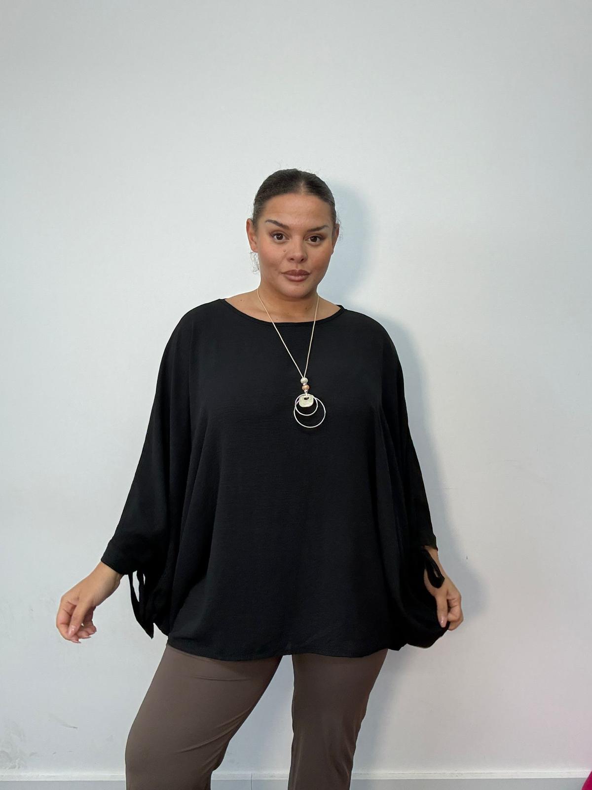 Plus Size Black Drape Sleeve Pocket Oversized Top x 2, 3 & 5 Pack Options