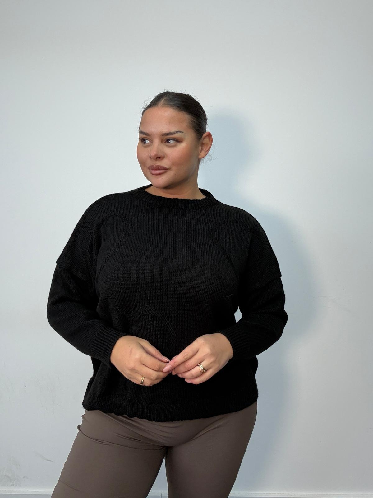 The Heart Detail Knit Jumper is a cosy yet wearable curve piece designed for effortless everyday styling. Cut in a relaxed silhouette, it offers a comfortable fit that skims the body while allowing ease of movement for plus size shapes. Featuring subtle heart detailing knitted into the fabric, this jumper adds a soft, feminine touch without being overly bold. Crafted from a soft-touch knit, it provides warmth and comfort while remaining lightweight enough for layering. Perfect for pairing with leggings, denim, or casual trousers, this style works seamlessly across casual, lounge, and off-duty edits. A strong wholesale option for retailers seeking reliable knitwear with a subtle design twist and broad customer appeal.