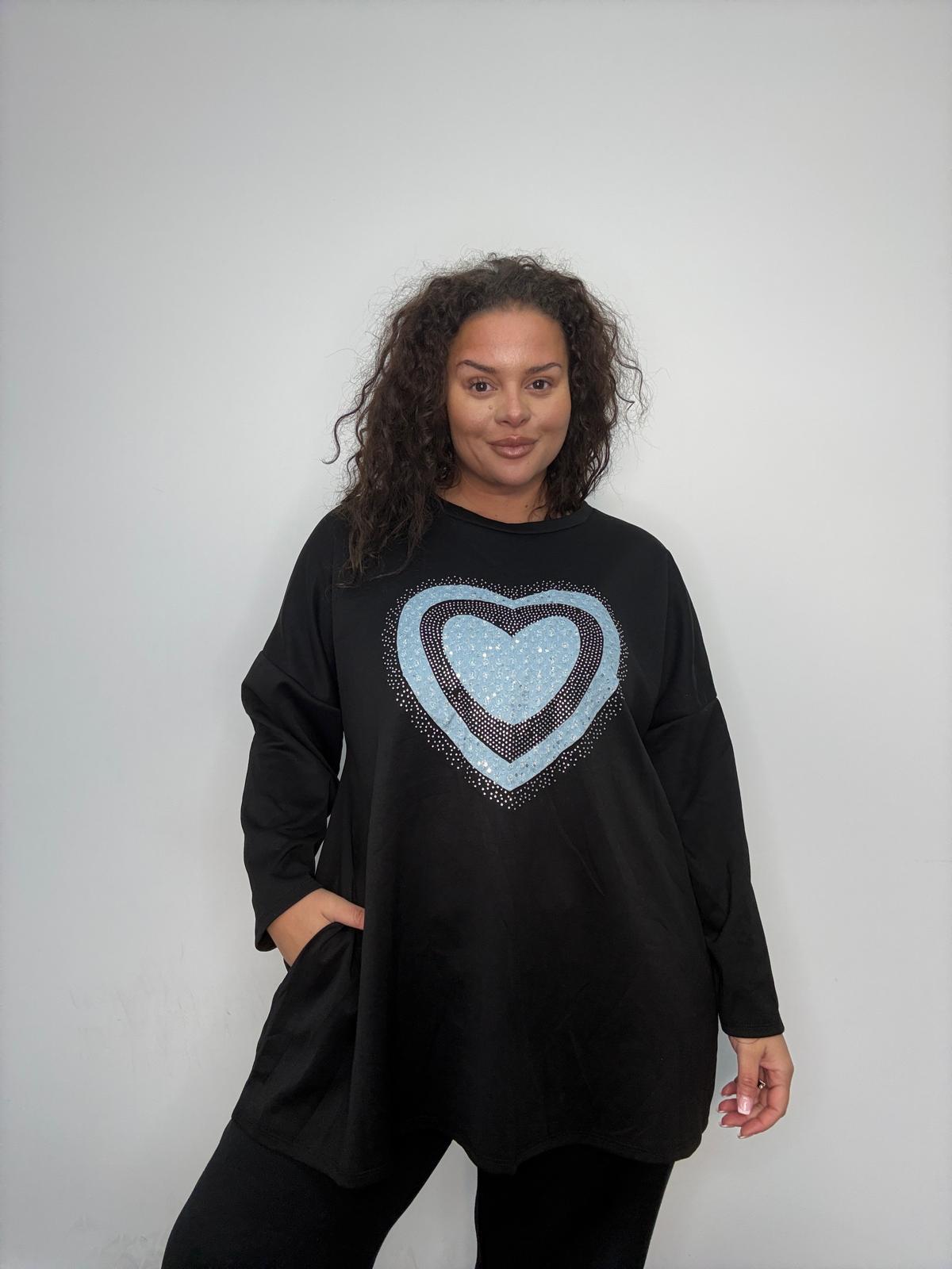 This plus size sweat-style top is a comfortable, statement-led piece designed to add colour and subtle sparkle to curve collections. Featuring a bold heart motif, it offers visual interest while remaining easy to wear and style. Cut in a relaxed, flattering fit with a classic round neckline and long sleeves, this top delivers everyday comfort with a fashion-forward edge. The soft-touch fabric makes it ideal for casual dressing, layering, and off-duty looks that plus size customers consistently gravitate towards. A strong, easy-selling option for UK wholesale buyers seeking wearable plus size styles with added detail and shelf appeal.