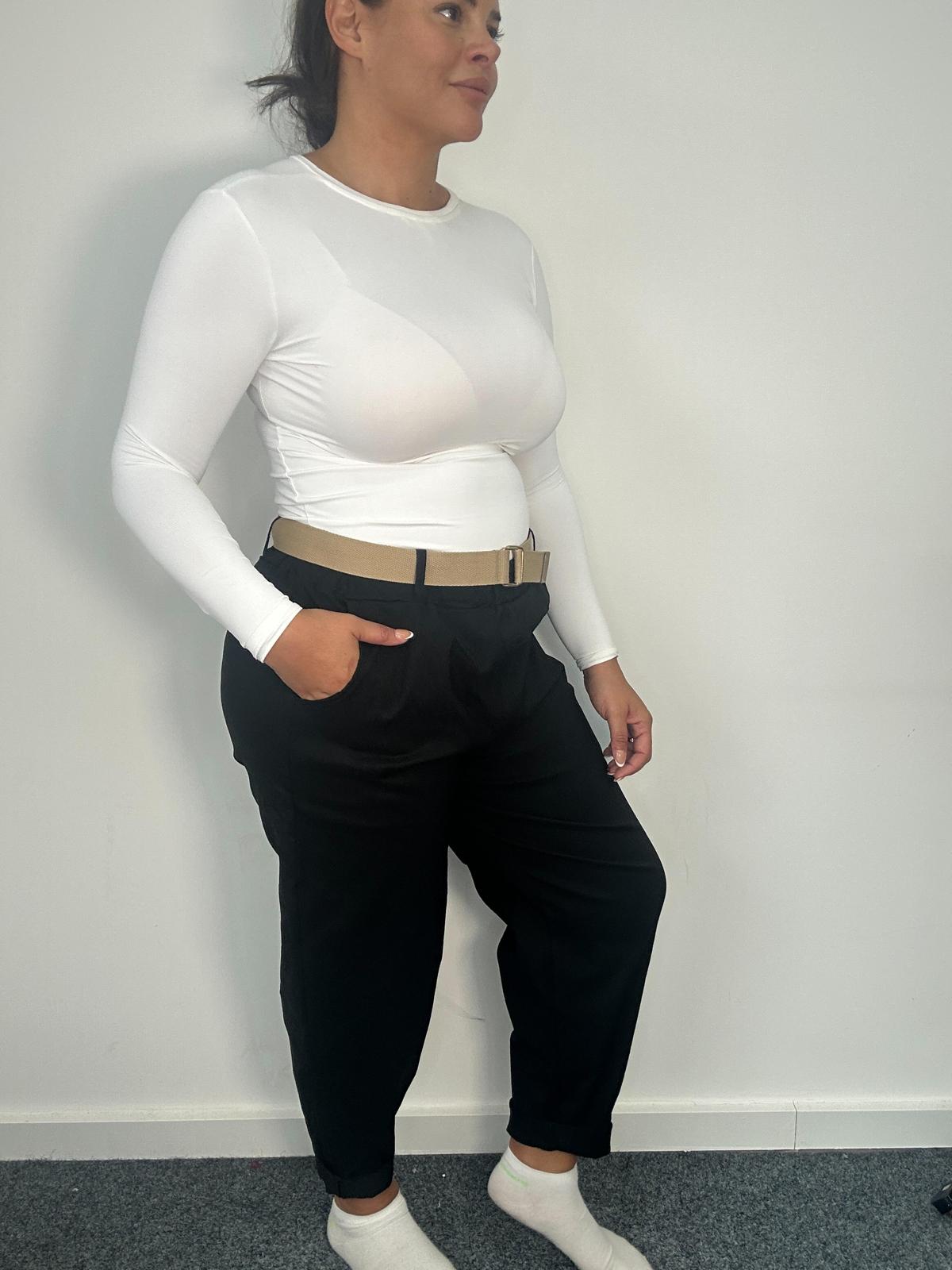 Plus Size Black High Waist Belted Trousers x 2, 3 & 5 Pack Options