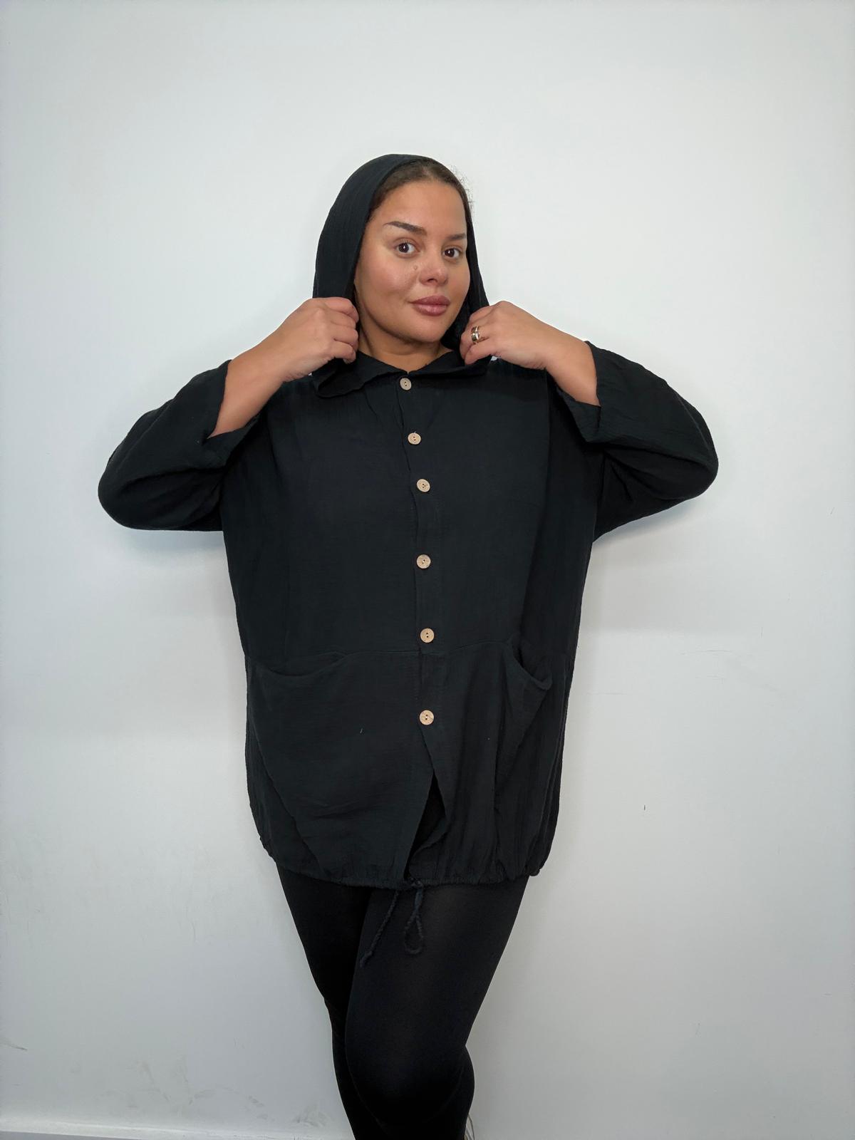 Our Plus Size Hooded Button Through Tunic Top is a casual wardrobe essential designed for comfort-led everyday styling. Crafted from a soft, lightweight textured woven fabric, this tunic top offers a relaxed silhouette that drapes comfortably over the body without clinging. Featuring a button-through front, attached hood and functional front pockets, it blends practicality with effortless style. The adjustable drawstring hem allows for subtle shaping while maintaining a laid-back, modern look. Its longer tunic length provides flattering coverage, making it ideal for pairing with leggings, trousers or jeans. Perfect for casualwear collections, travel edits and everyday curve essentials, this tunic top delivers strong commercial appeal and repeat customer value.