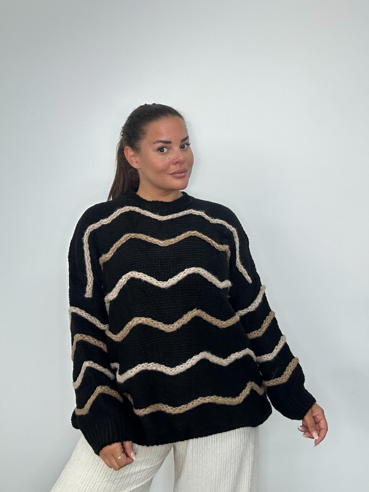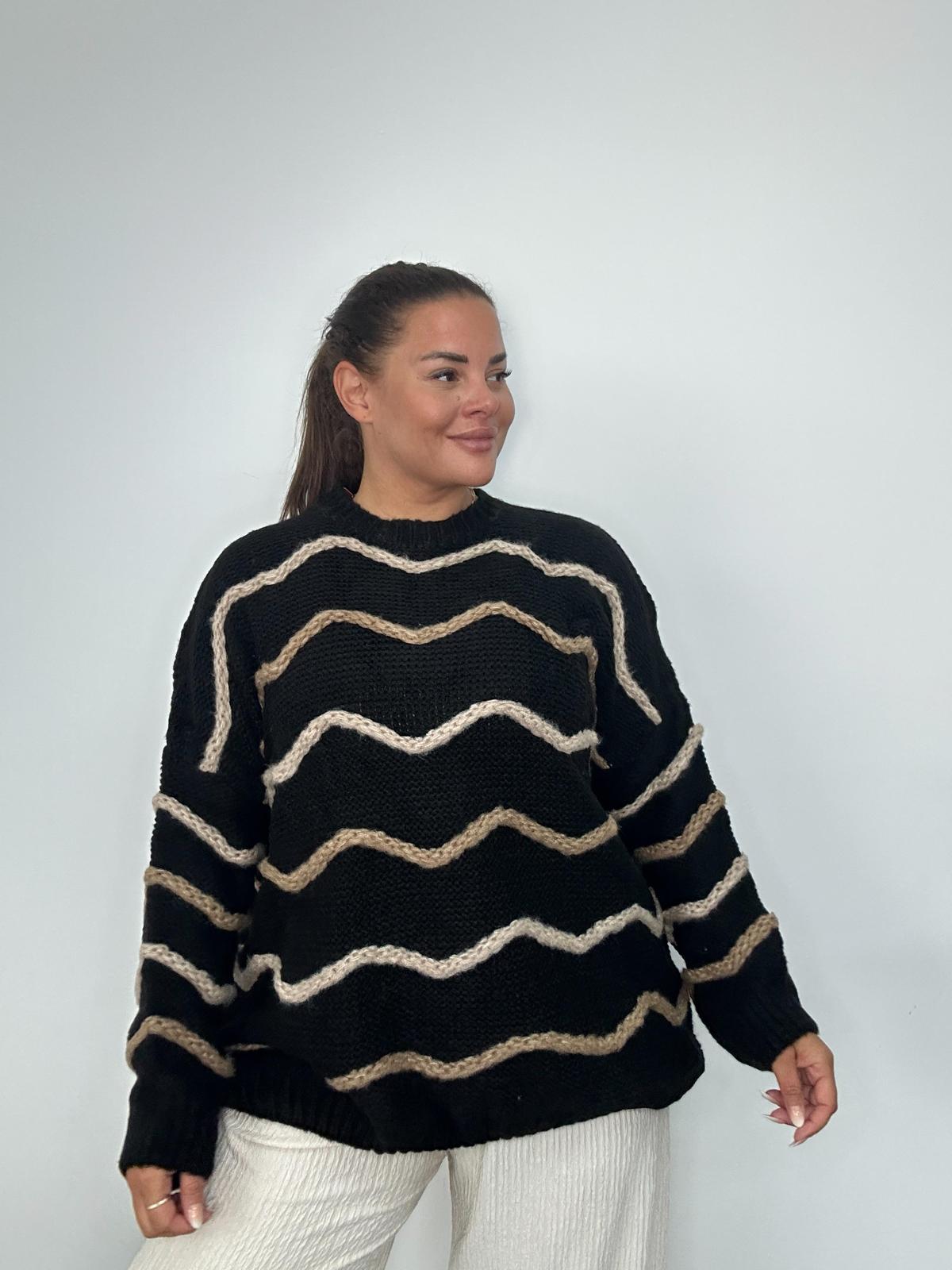 This Plus Size Knitted Jumper is a stylish and cosy addition to any plus size wardrobe. Featuring a relaxed fit and long sleeves, it is detailed with a wave stripe pattern for a modern twist on classic knitwear. Made from soft knitted fabric, it offers comfort, warmth, and versatility, perfect for layering during cooler seasons. A must have wholesale option for UK retailers looking for fashionable, curve friendly knitwear.