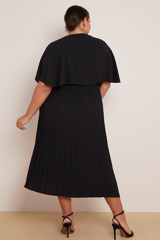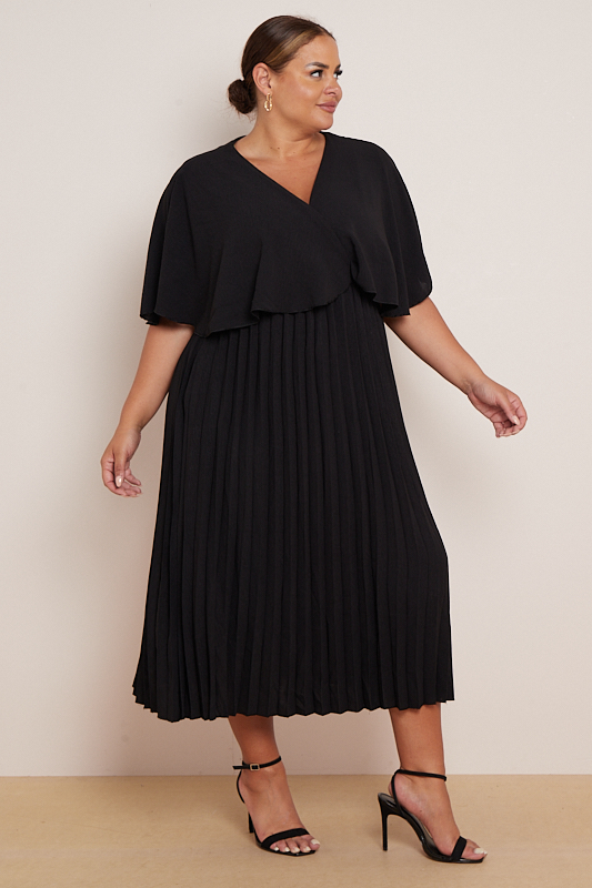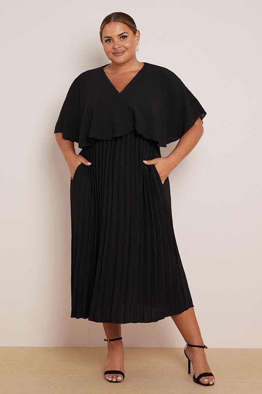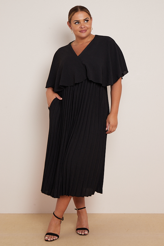 Plus Size Black Layered Top Pleated Skirt Dress With Pockets x 5
