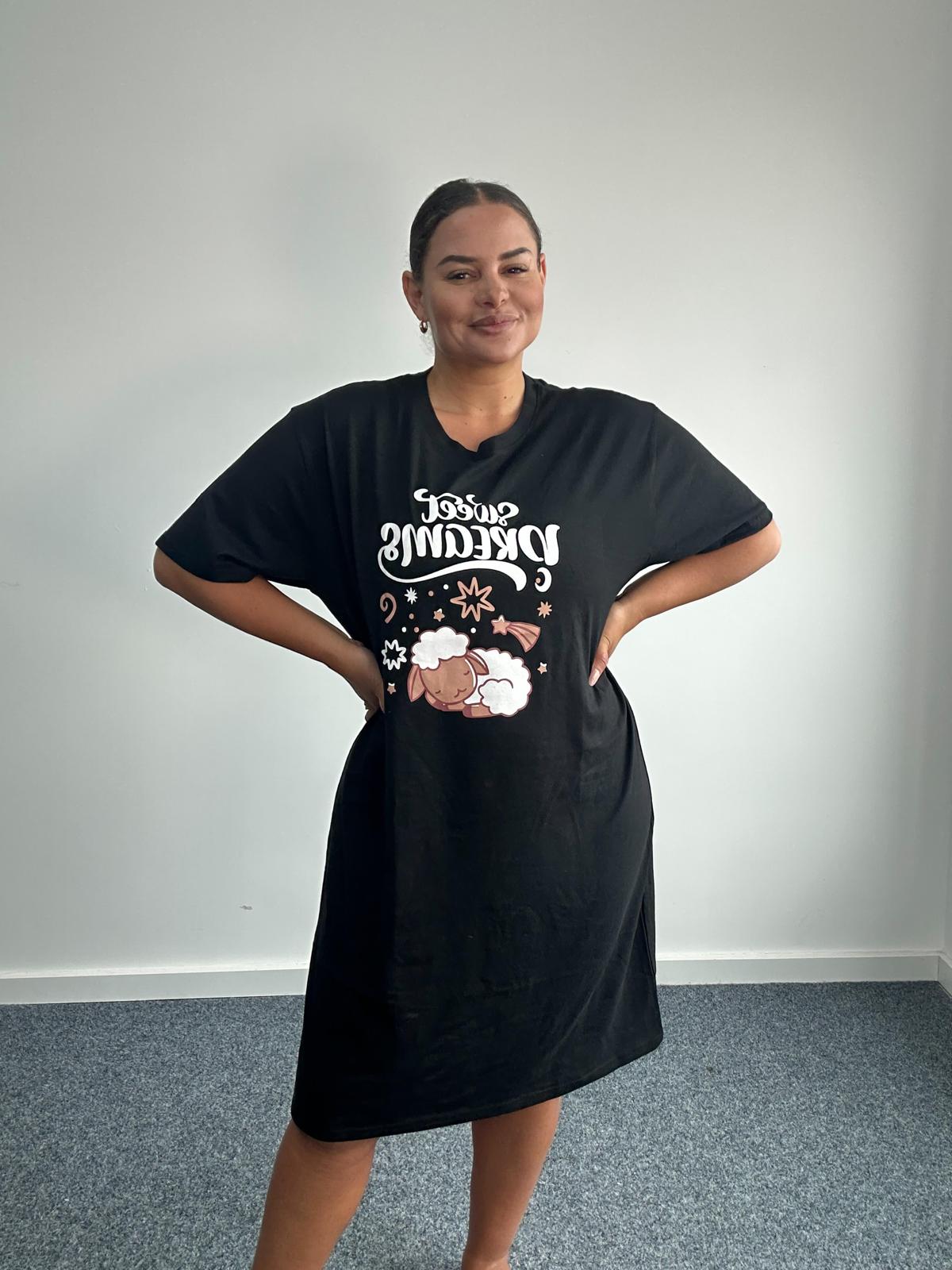 Plus Size Black Nightdress Printed Short Sleeve Sleepwear x 2, 3 & 5 Pack Options