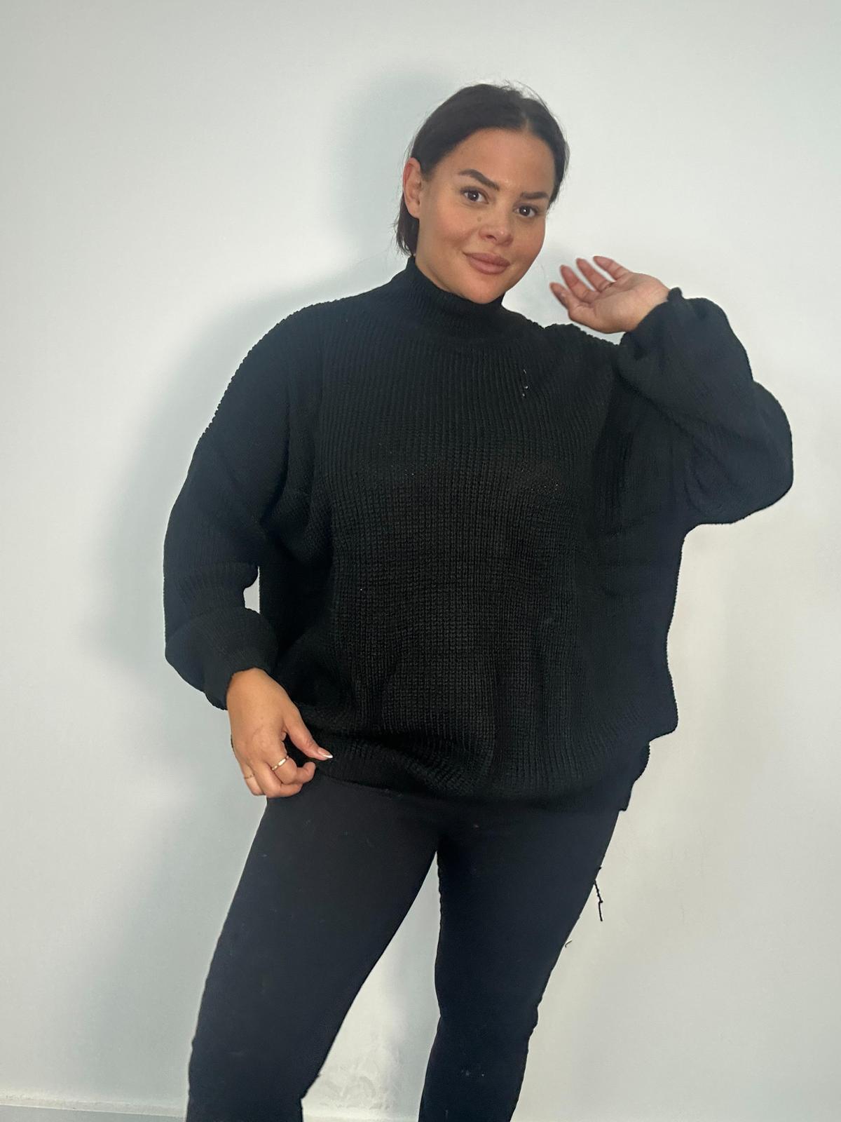 Plus Size Black Oversized Roll Neck Knit Sweater x 2, 3 & 5 Pack Options