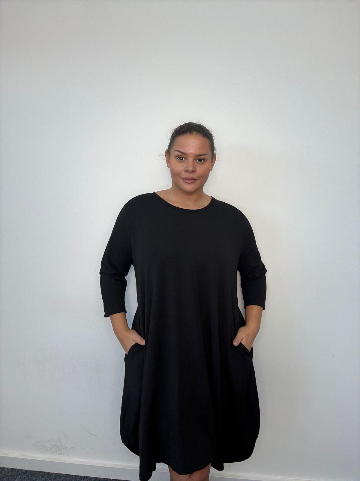 • This plus size swing dress is a timeless curve essential designed for effortless comfort and everyday versatility. Cut in a relaxed, flowing silhouette, it drapes beautifully over the body while offering a flattering fit for plus size customers. Featuring practical side pockets and a classic round neckline, this style blends functionality with simplicity. The three-quarter length sleeves make it ideal for transitional wear, while the longer length offers confidence and ease for day-to-day dressing. A reliable, easy-selling option for UK wholesale buyers seeking comfortable, wearable plus size styles suitable for casual, work, or off-duty wear.