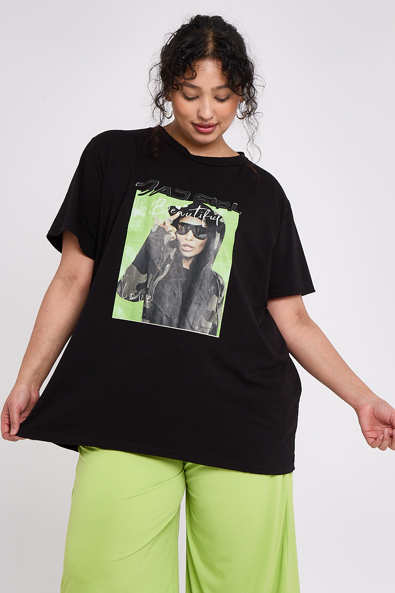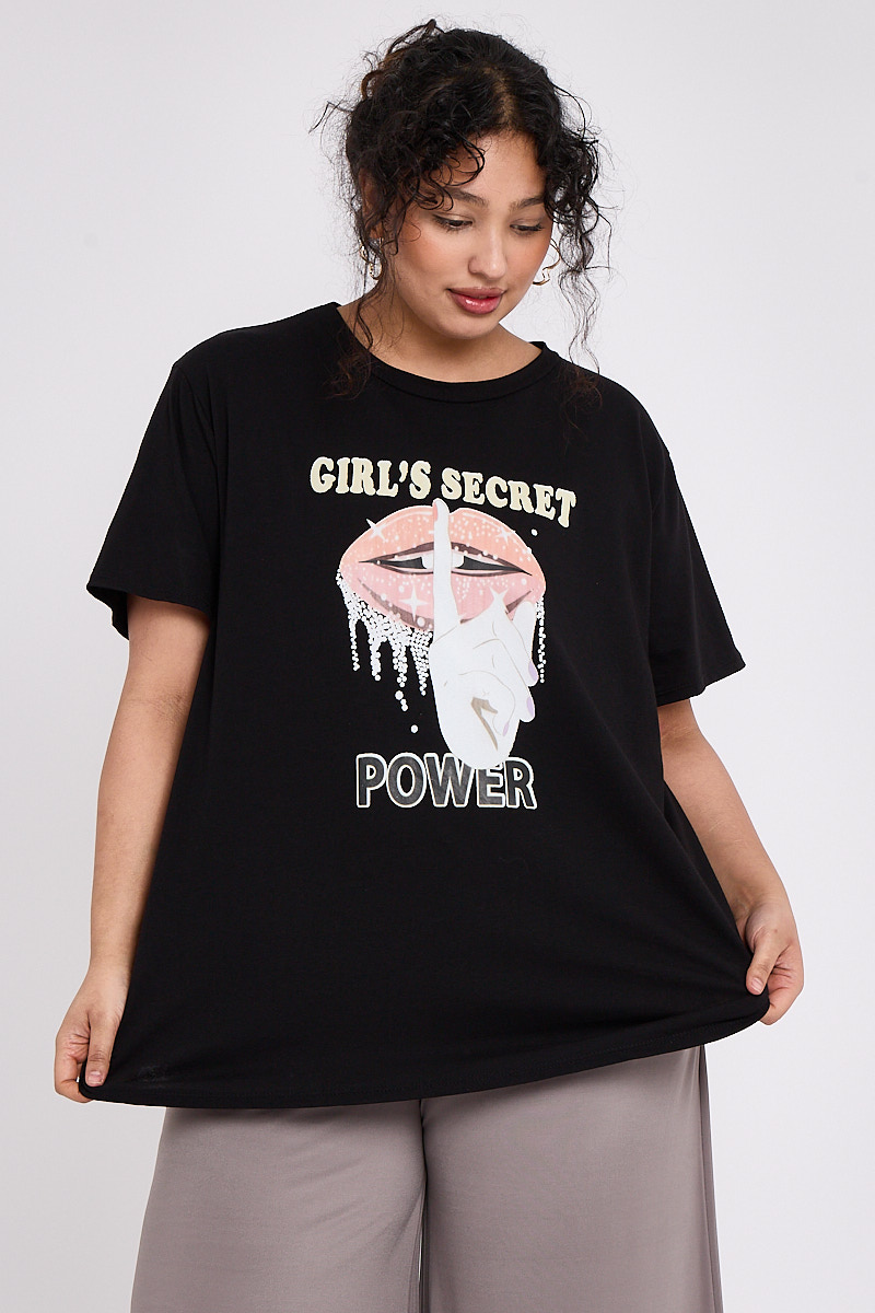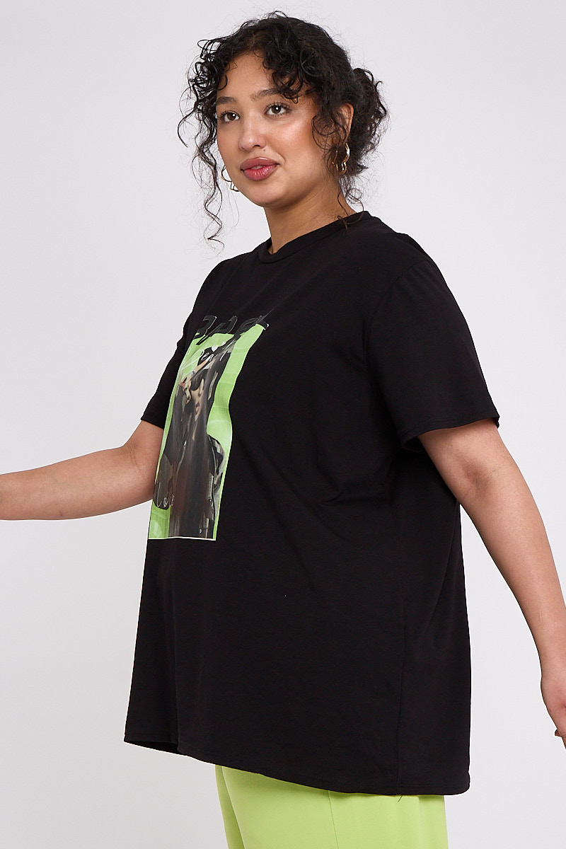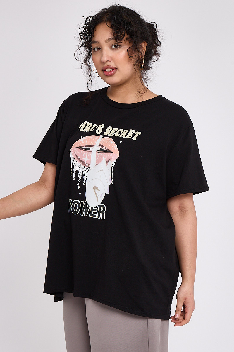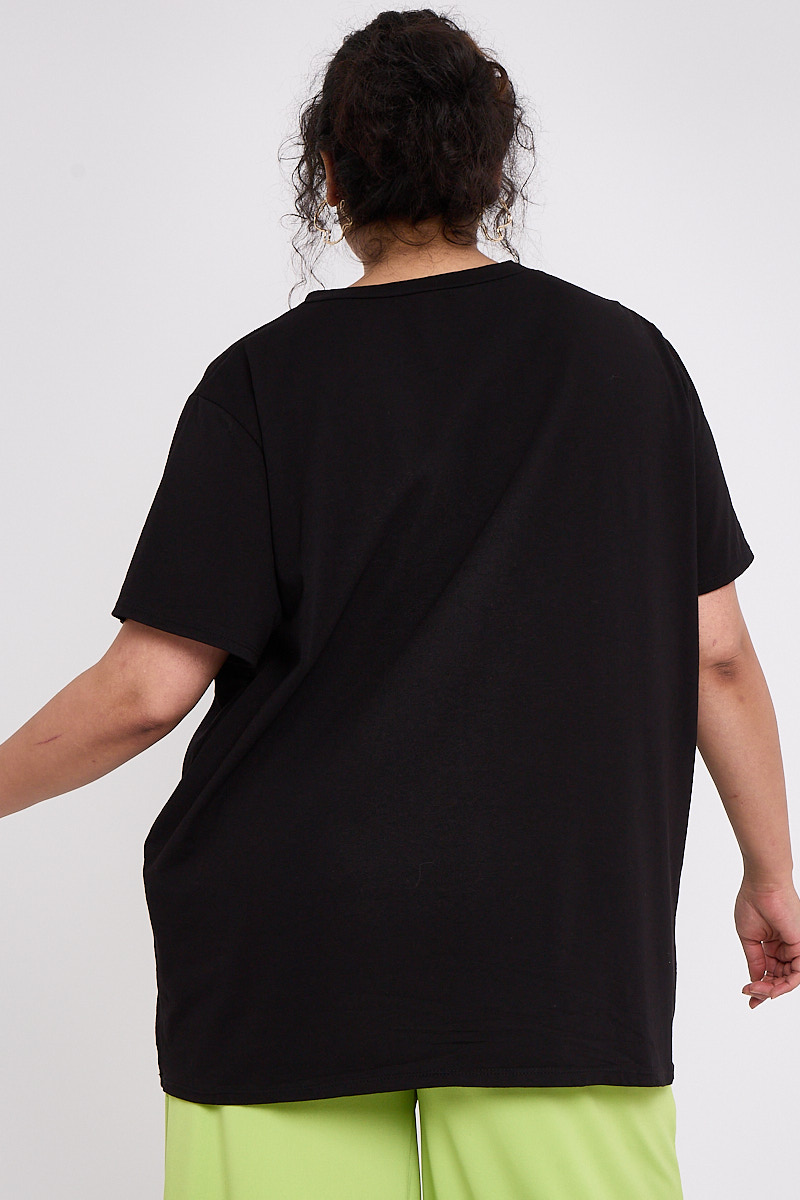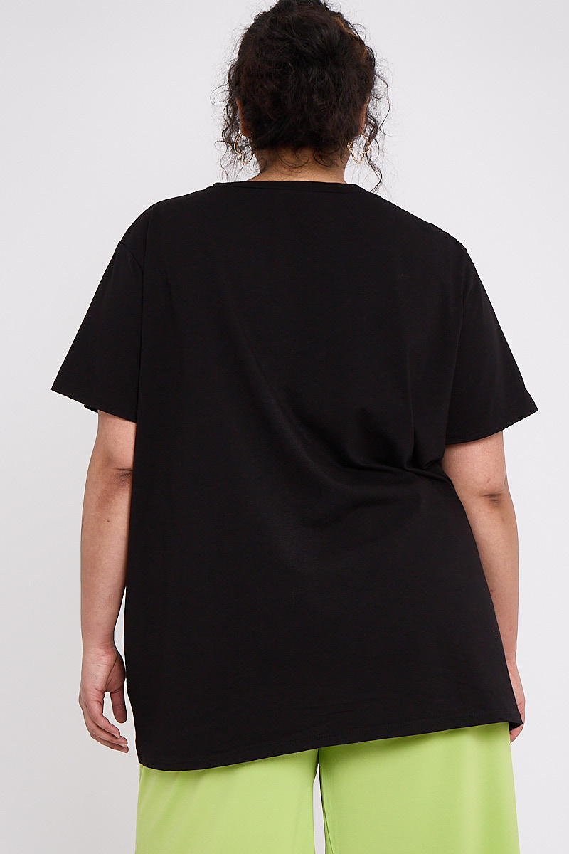 Plus Size Black Printed Short Sleeve T Shirt x 5