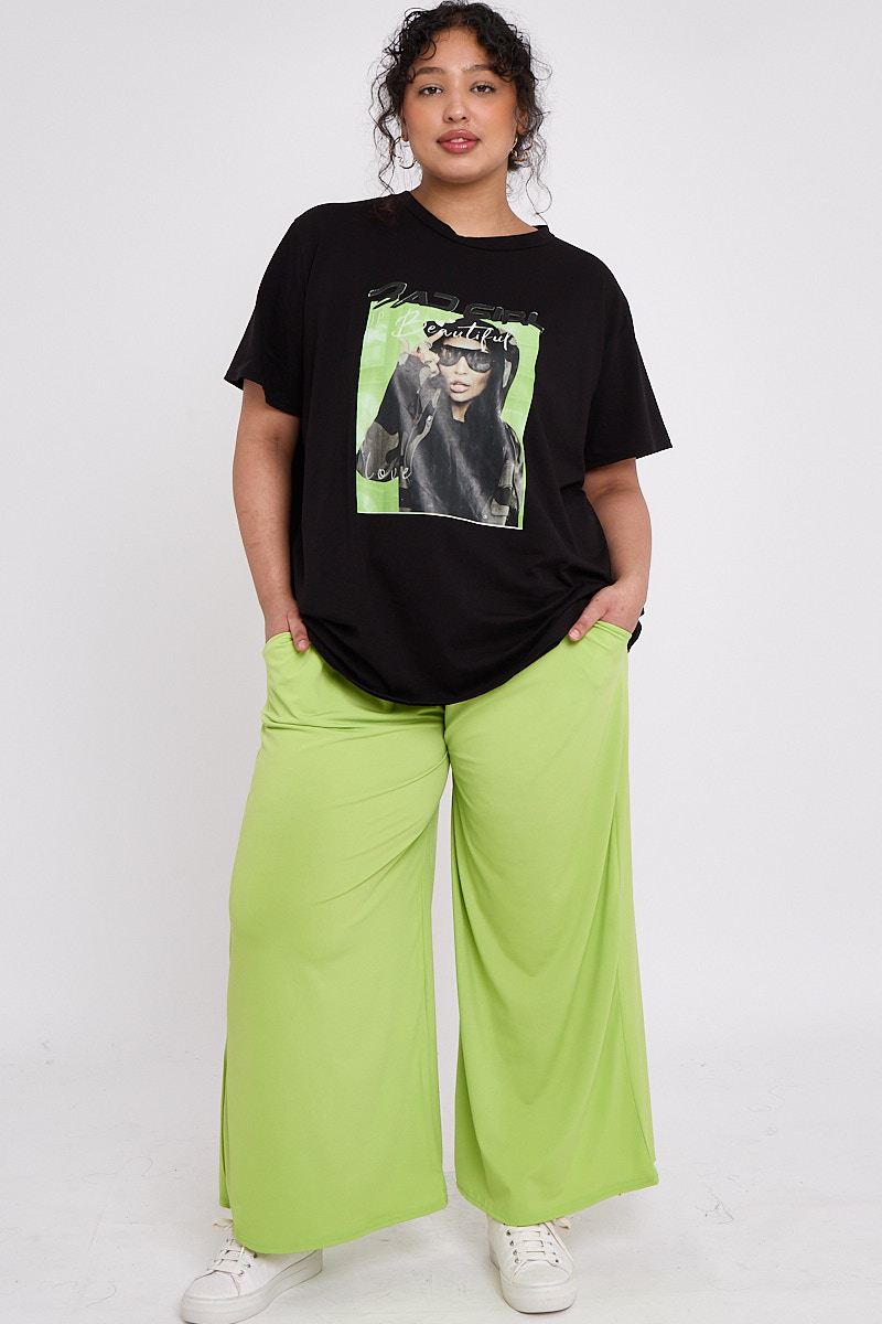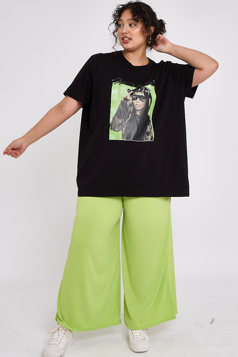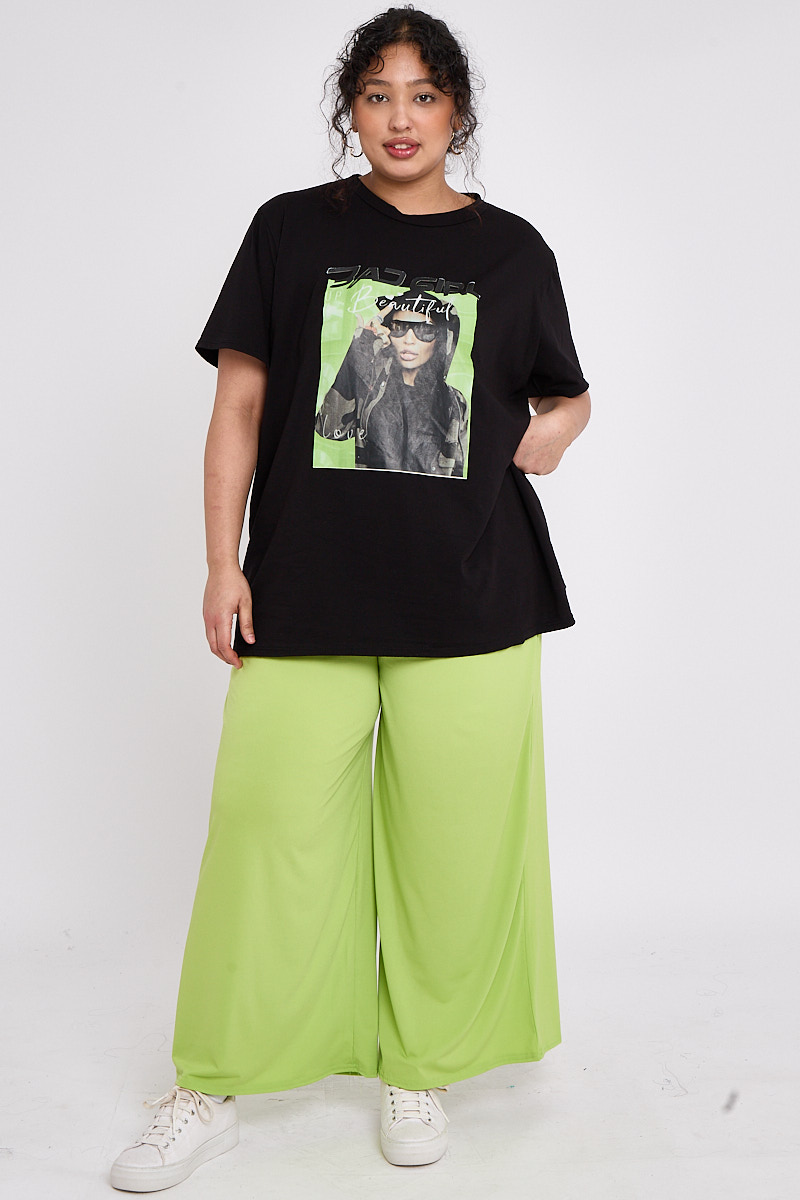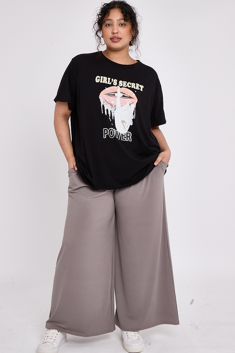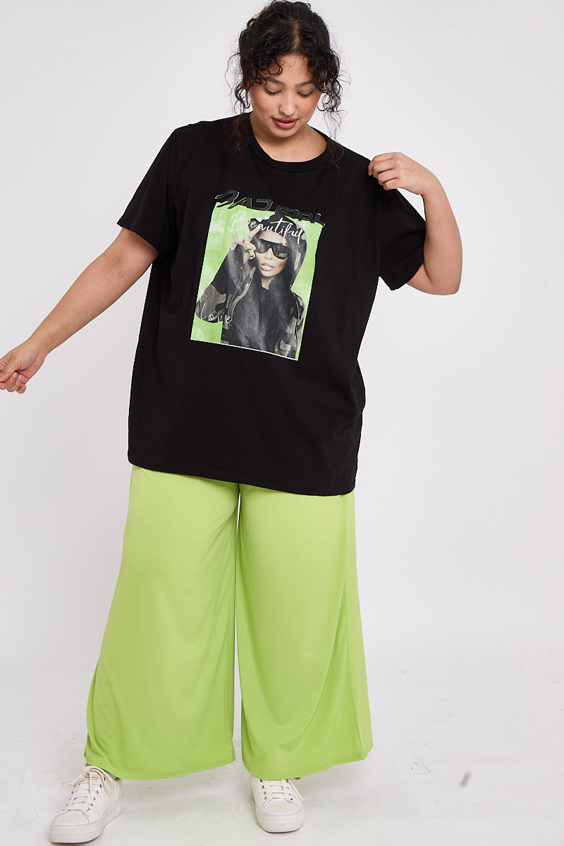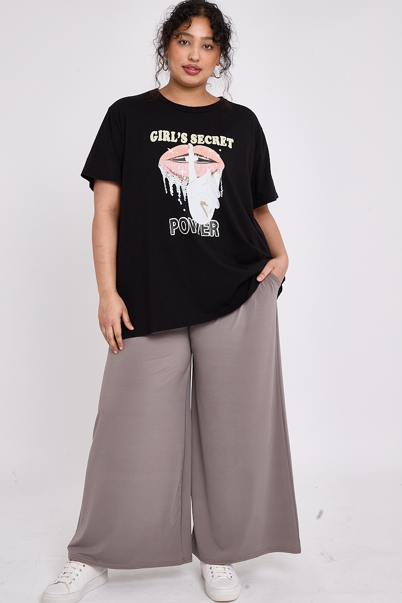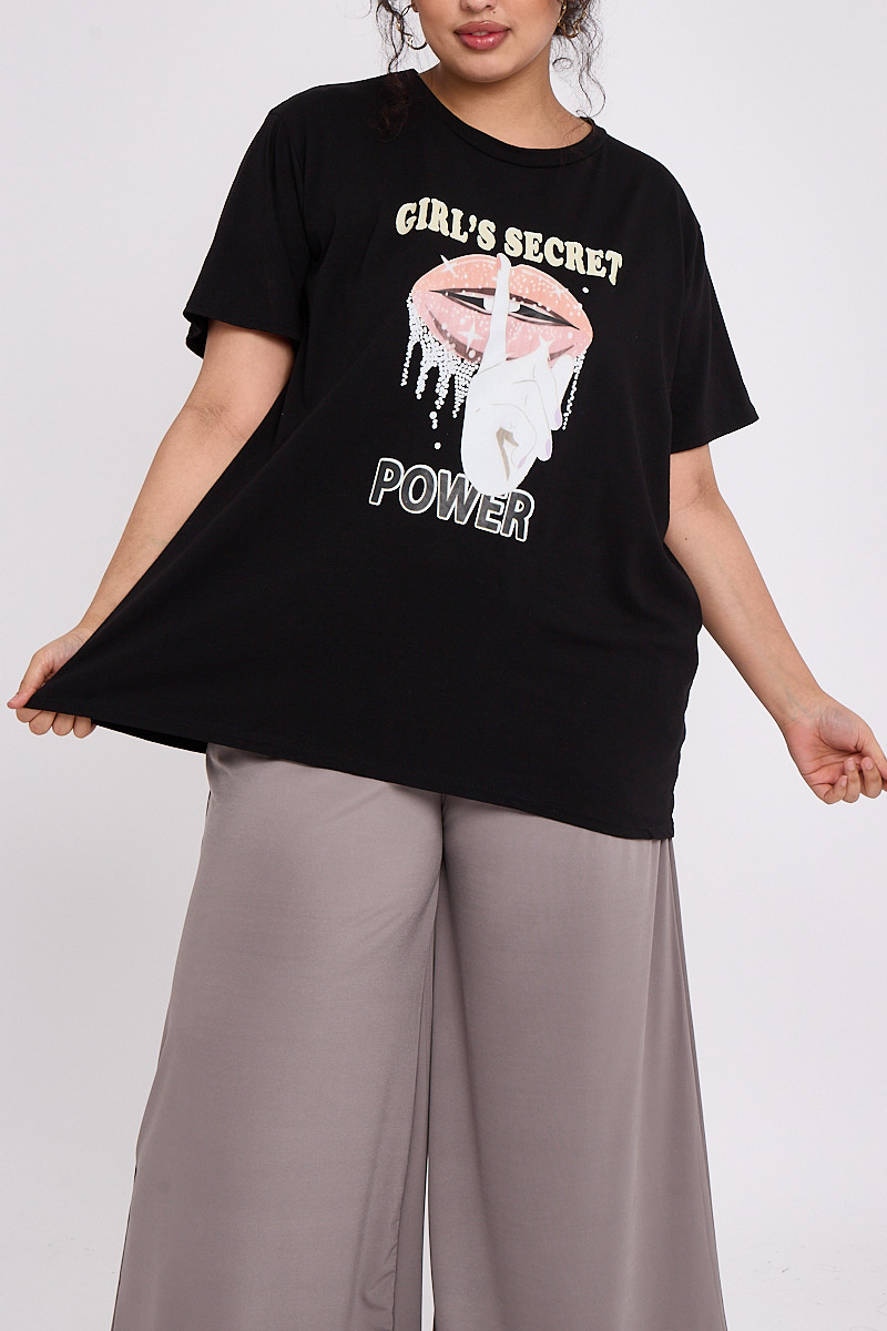 Plus Size Black Printed Short Sleeve T Shirt x 5