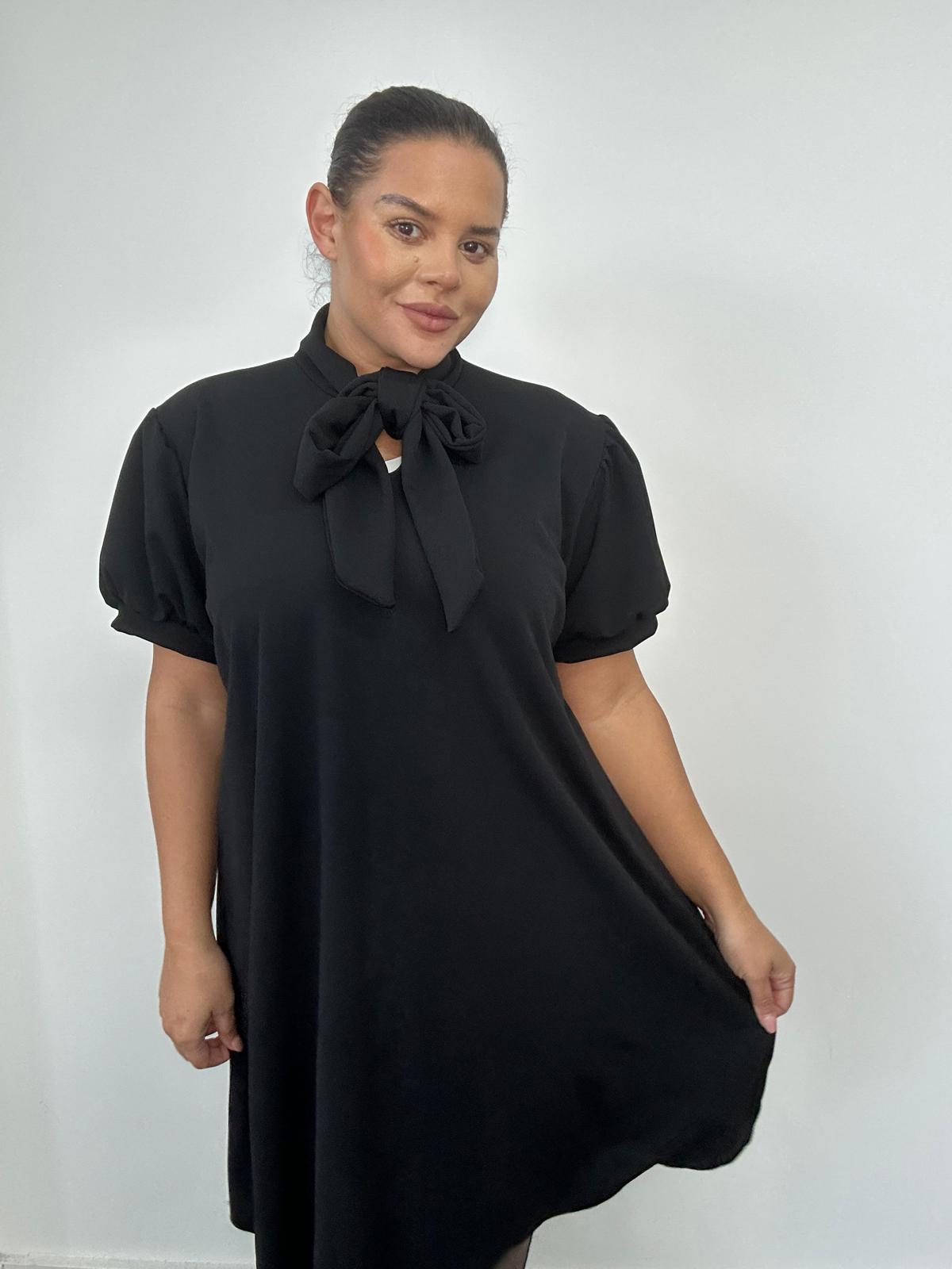 Plus Size Black Puff Sleeve Pussybow Dress x 2, 3 & 5 Pack Options