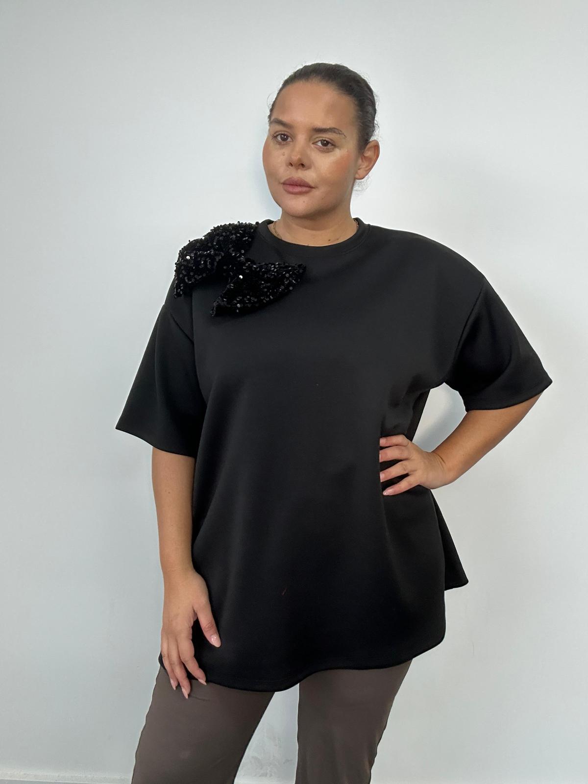 • Make a statement this season with our Plus SizeSequin Bow Shoulder Top the perfect blend of festive glam and easy-to-wear comfort. Featuring a bold sequin bow detail on one shoulder, this top adds instant sparkle while maintaining a relaxed, flattering silhouette. Perfect for boutique buyers looking for statement plus-size partywear that’s chic, comfortable, and eye-catching.