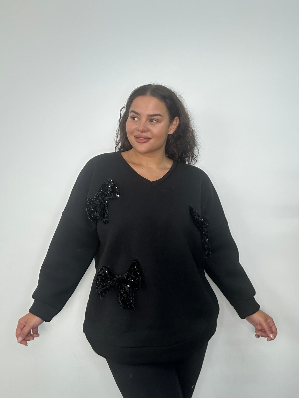 Plus Size Black Sequin Bow V Neck Jumper x 2, 3 & 5 Pack Options