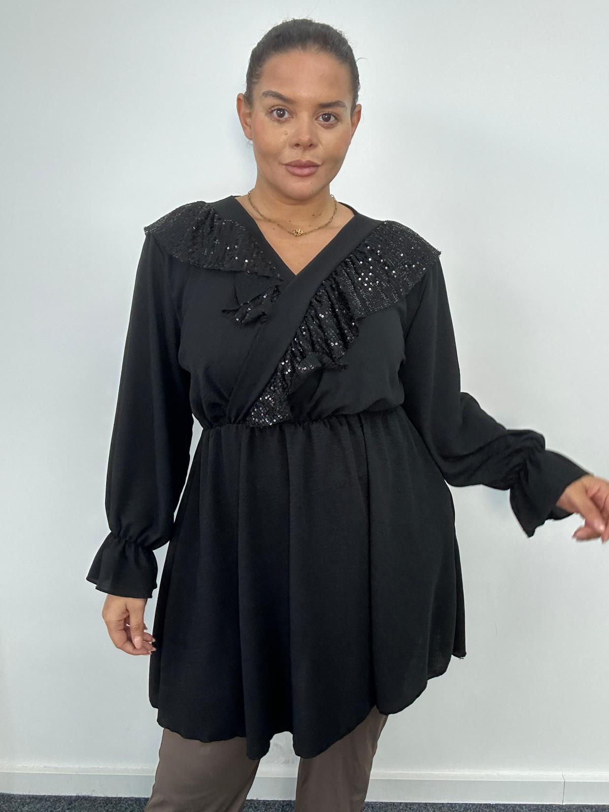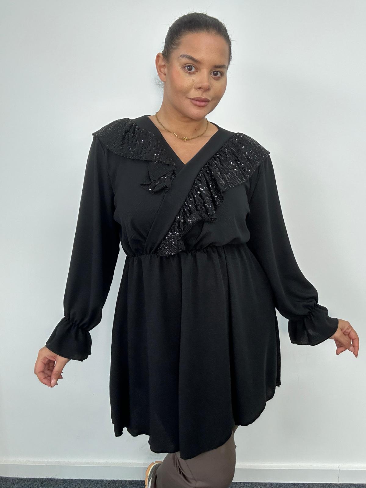 Plus Size Black Sequin Ruffle Wrap Tunic Top x 2, 3 & 5 Pack Options