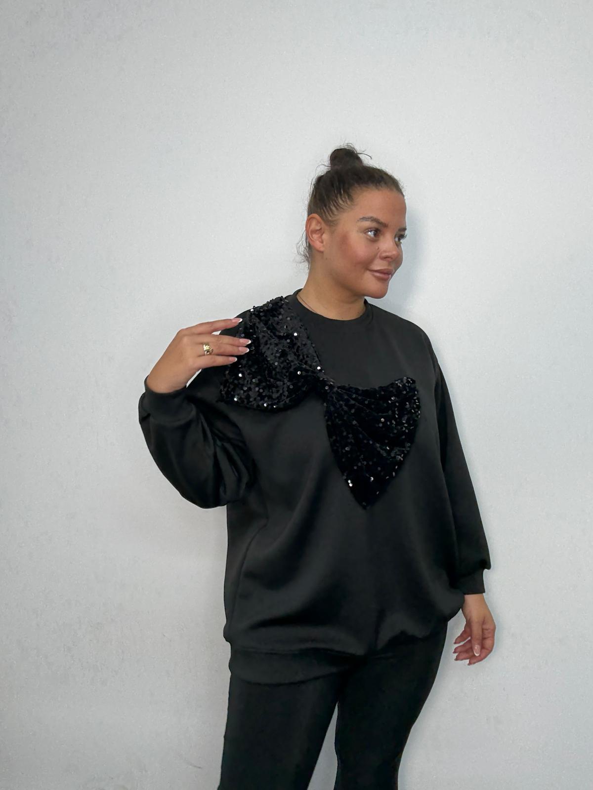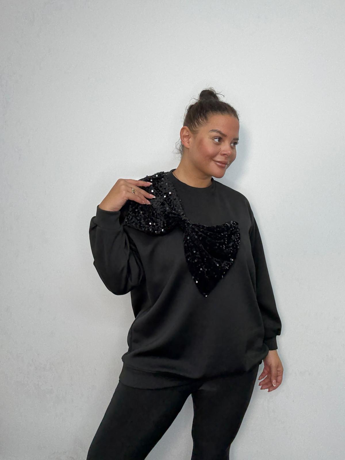 Plus Size Black Statement Sequin Bow Sweatshirt x 2, 3 & 5 Pack Options
