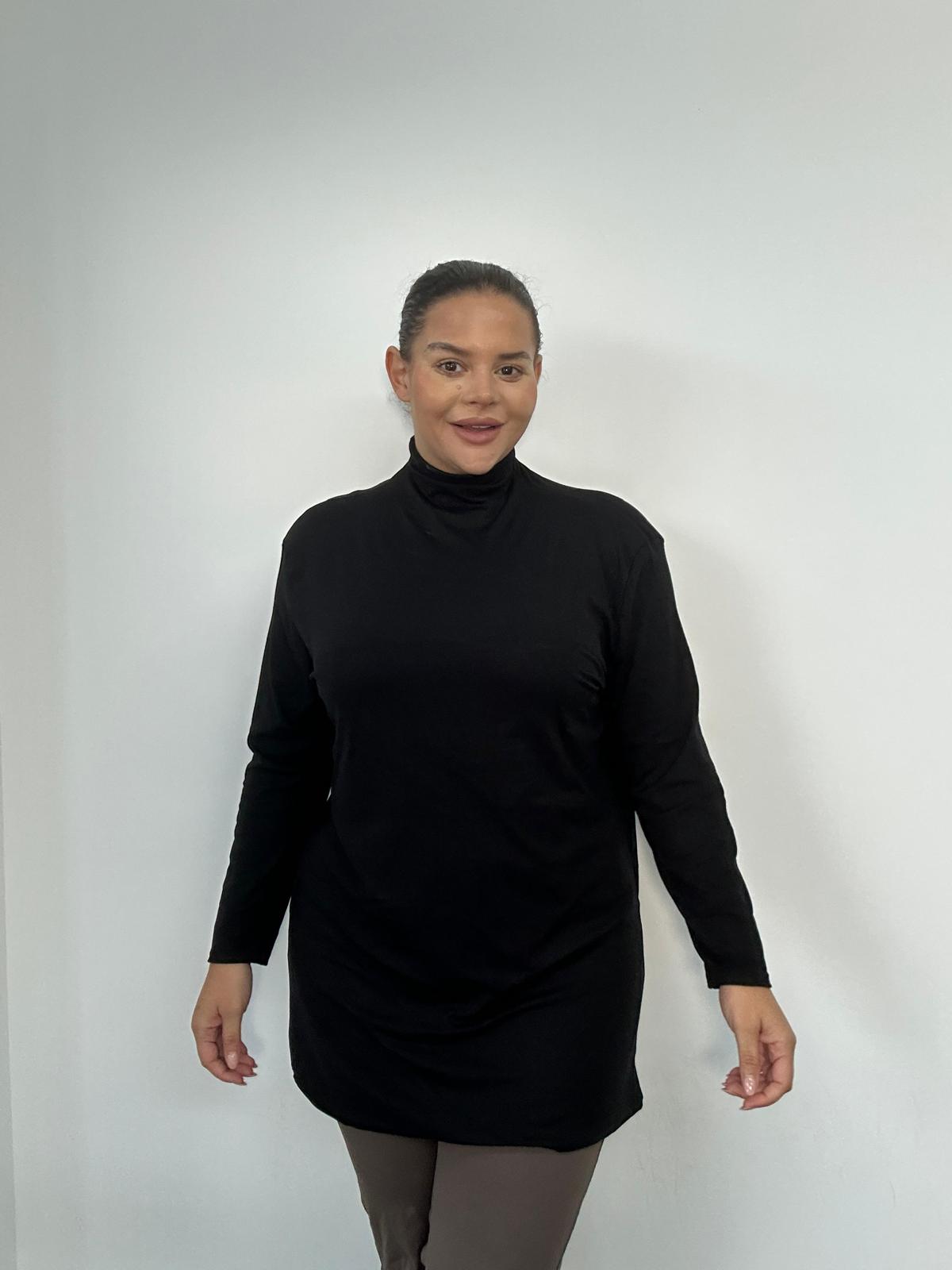 • Elevate your basics collection with our Plus Size Supersoft Polo Neck Top in. Designed with comfort and versatility in mind, this essential layering piece is made from buttery-soft, stretch jersey fabric that feels amazing against the skin. The classic polo neckline offers a sleek, streamlined look while the longline cut provides added coverage perfect for pairing with leggings, jeans, or under blazers. A must-have for everyday wear, casual styling, or creating a polished layered look for your plus-size customers. Ideal for boutiques, online stores, and retailers seeking premium-feel wardrobe essentials for curvy women.