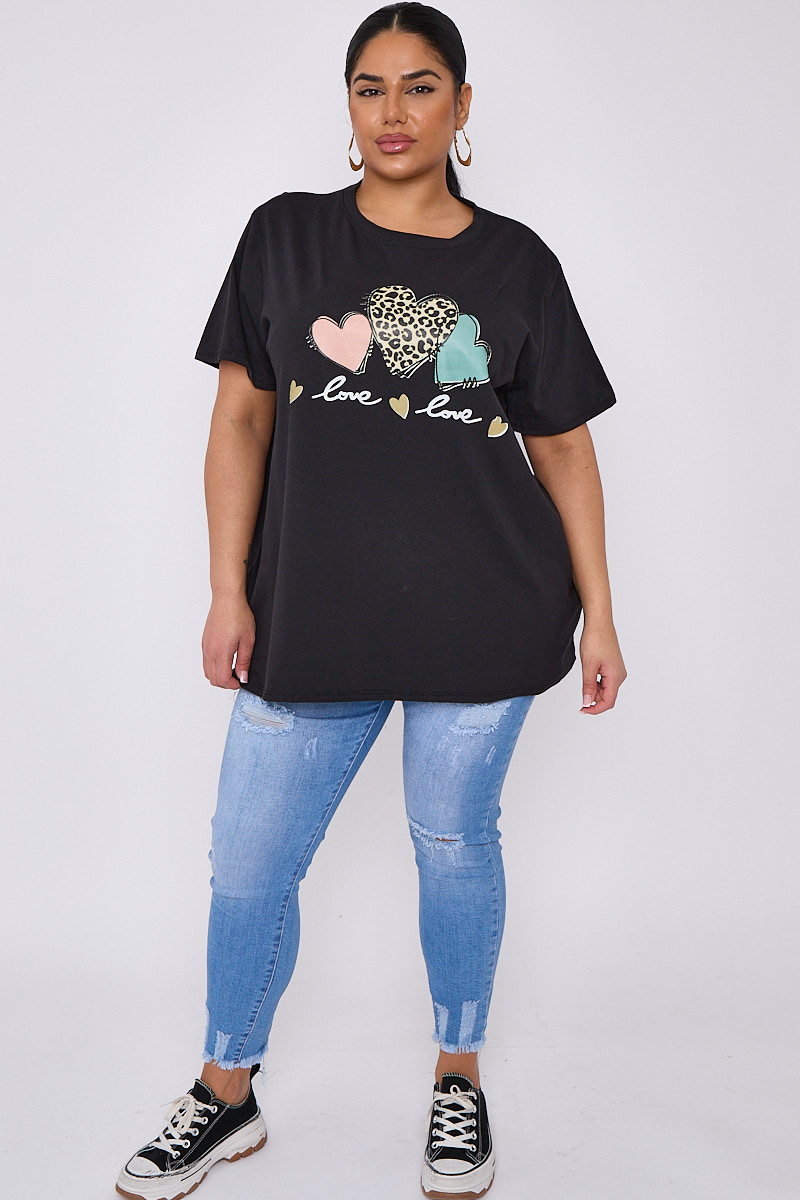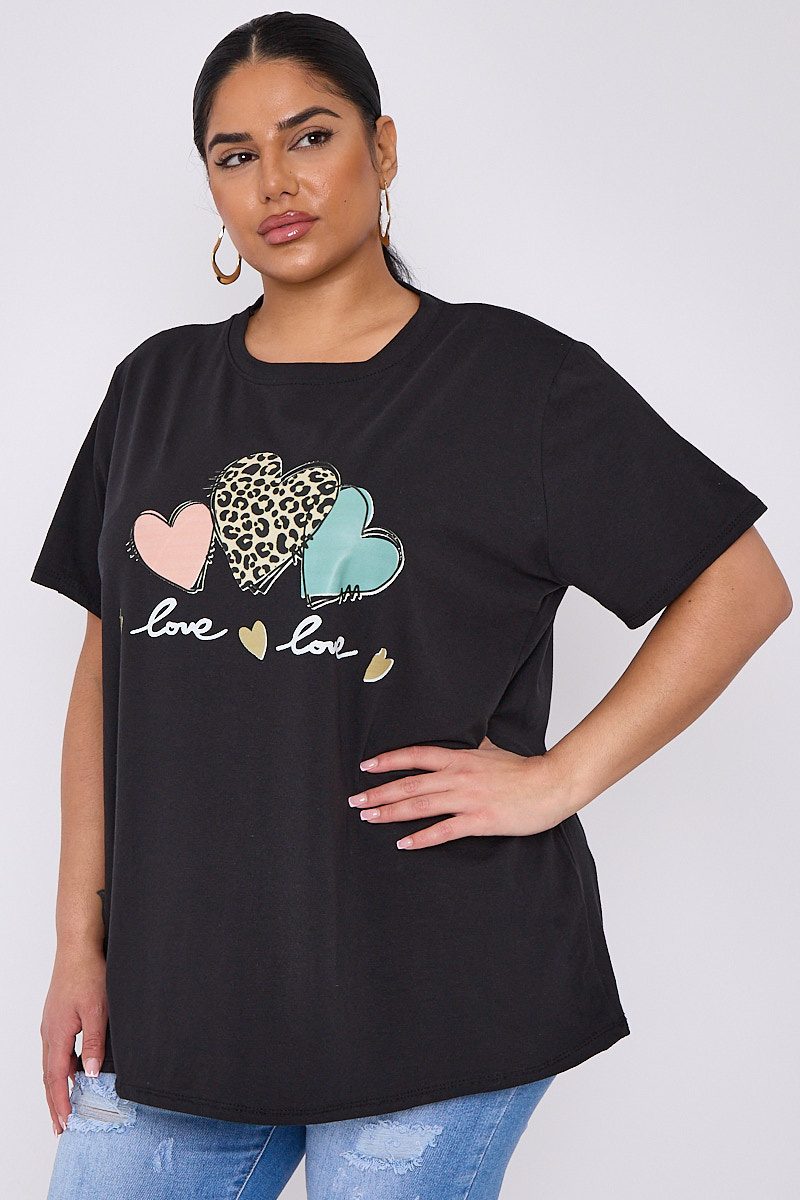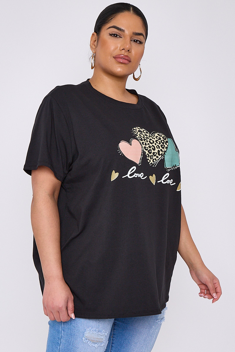 Plus Size Black Triple Heart Print Short Sleeve T Shirt x 5