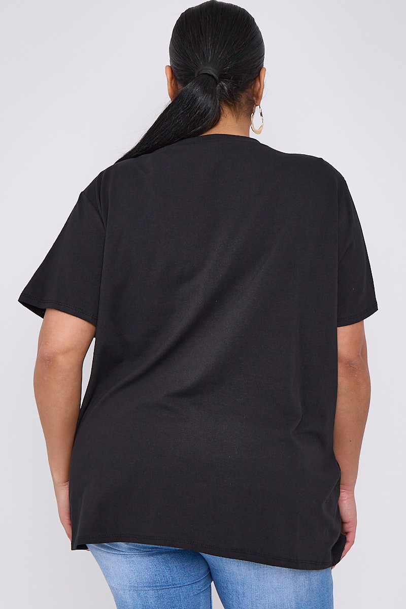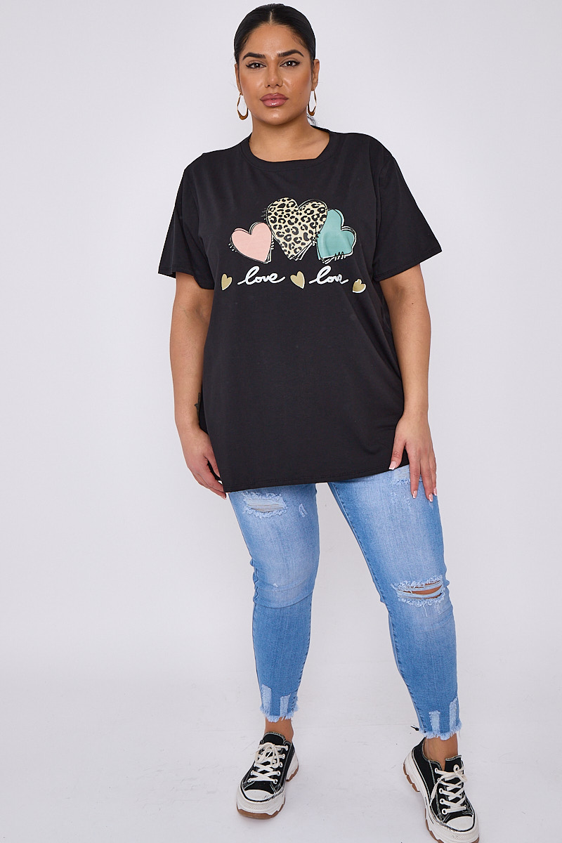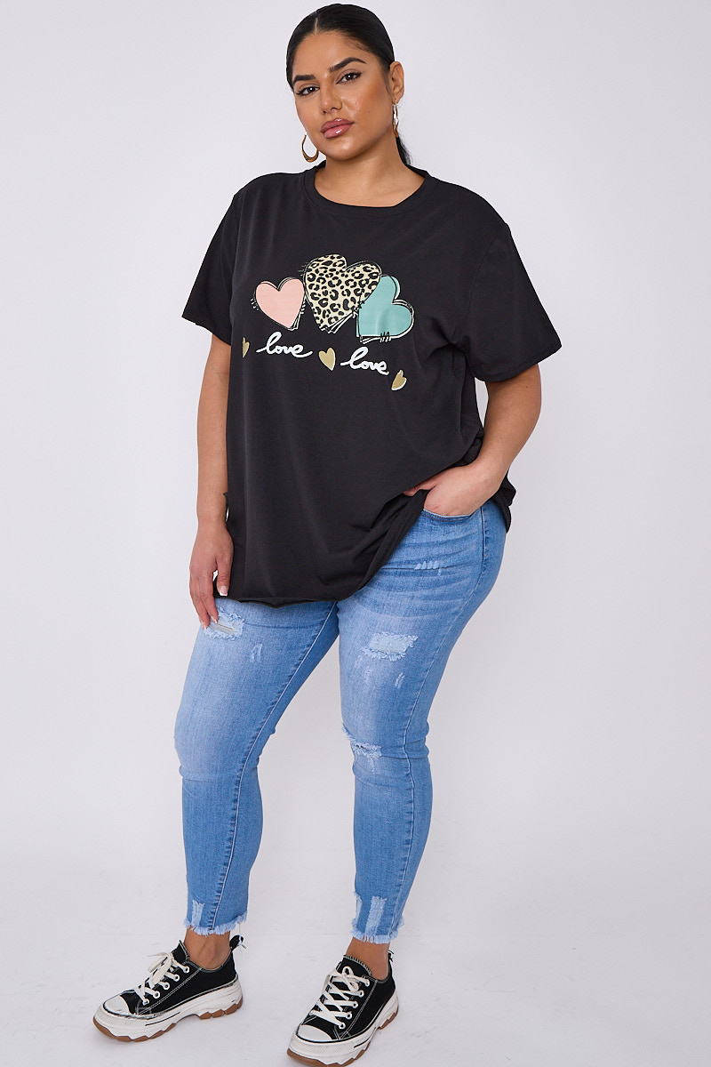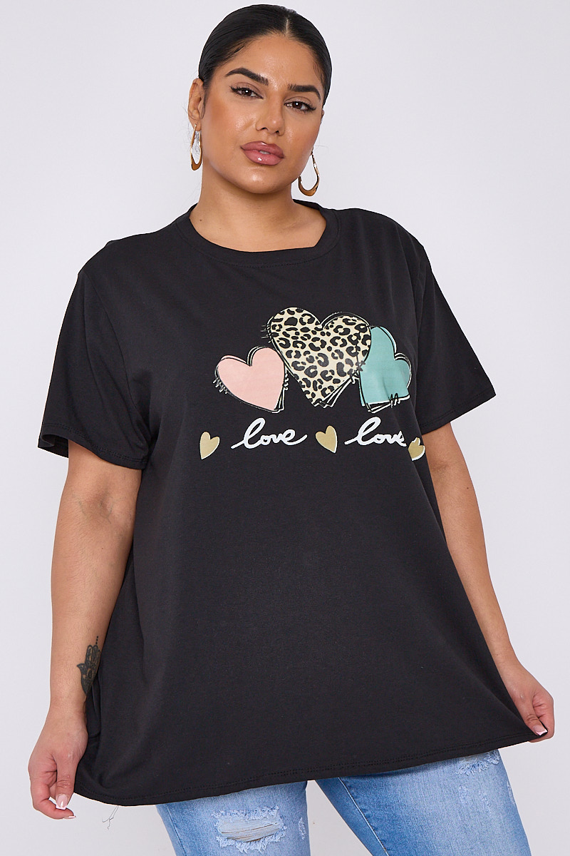 Plus Size Black Triple Heart Print Short Sleeve T Shirt x 5