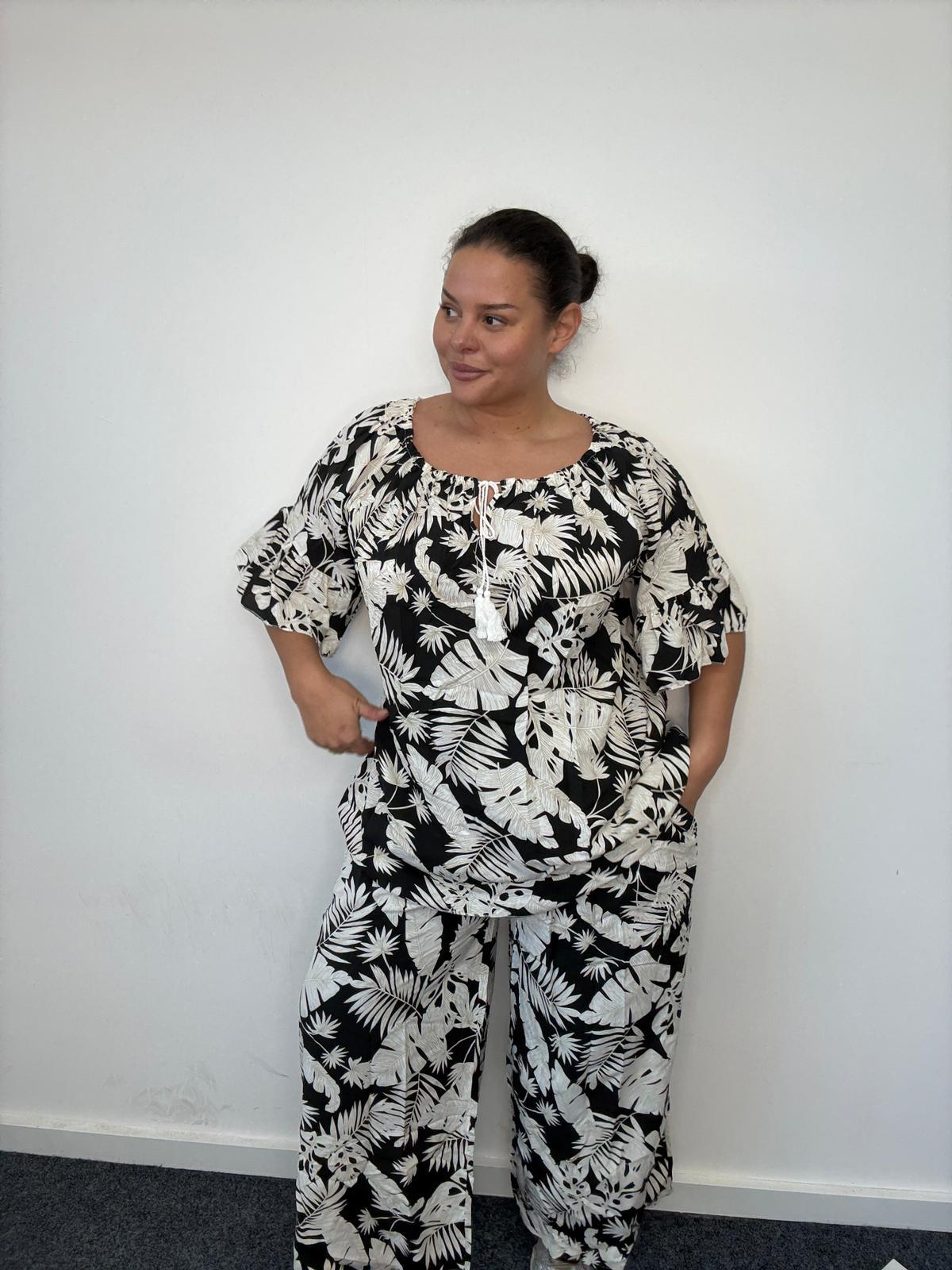 Plus Size Black Tropical Print Co-Ord Set x 2, 3 & 5 Pack Options