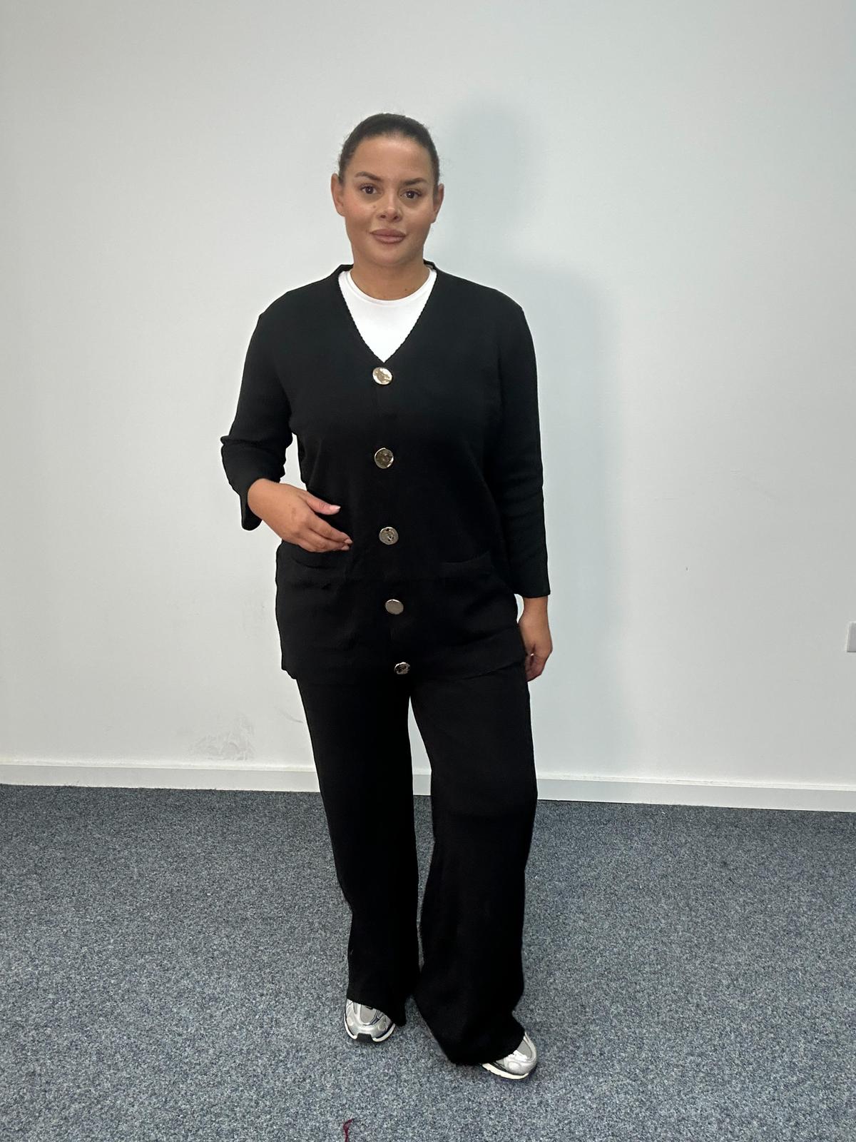 Keep it effortlessly chic and comfortable with this plus size loungewear set. Designed with style and ease in mind, this co-ord features a soft knit button-front cardigan with large statement buttons and matching relaxed-fit trousers. Perfect for everyday wear, travel, or casual lounging, it offers a polished look that’s both versatile and on-trend. A must-have addition for boutiques and online retailers looking to stock premium-quality plus size casualwear that combines comfort with style.