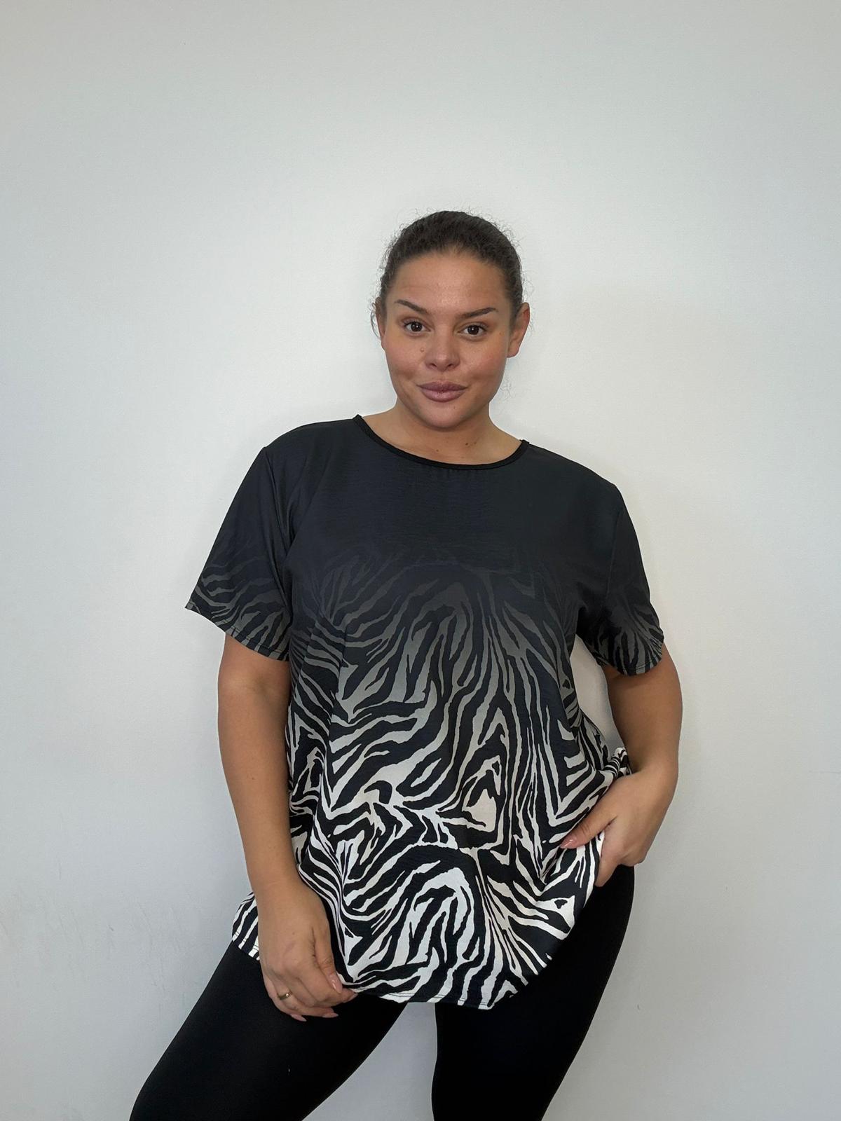 This plus size short sleeve top delivers effortless everyday styling with a subtle statement finish. Designed with a relaxed, flattering fit, it features a zebra print lower panel that adds contrast and visual interest while maintaining a sleek, wearable look. Crafted from a soft, lightweight fabric, this style offers comfort and ease of movement, making it ideal for all-day wear. The clean round neckline and longer length ensure a confidence-boosting silhouette, appealing to a wide range of plus size customers. A reliable, commercial option for UK wholesale buyers seeking versatile curve tops with trend-led detail.