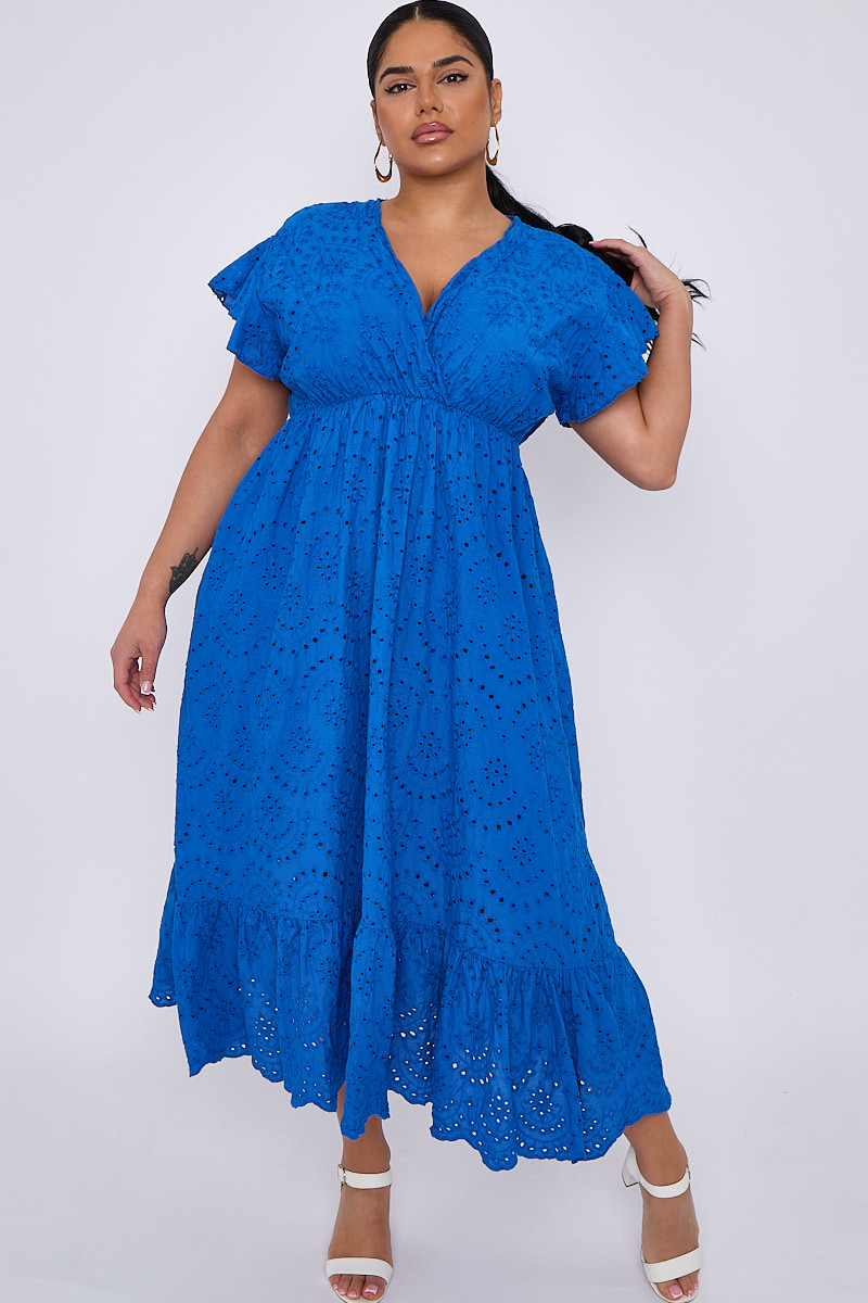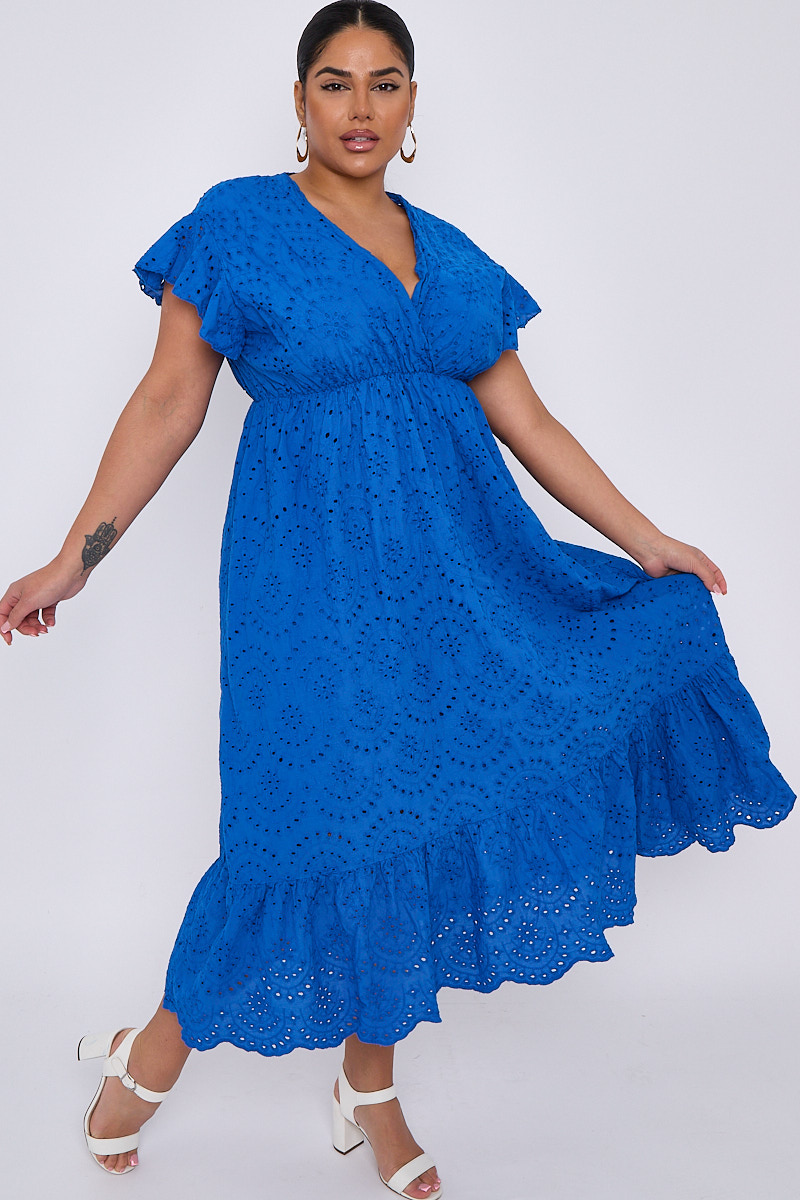 Plus Size Blue Broderie Lace Wrap Top Frill Sleeves Dress x 5
