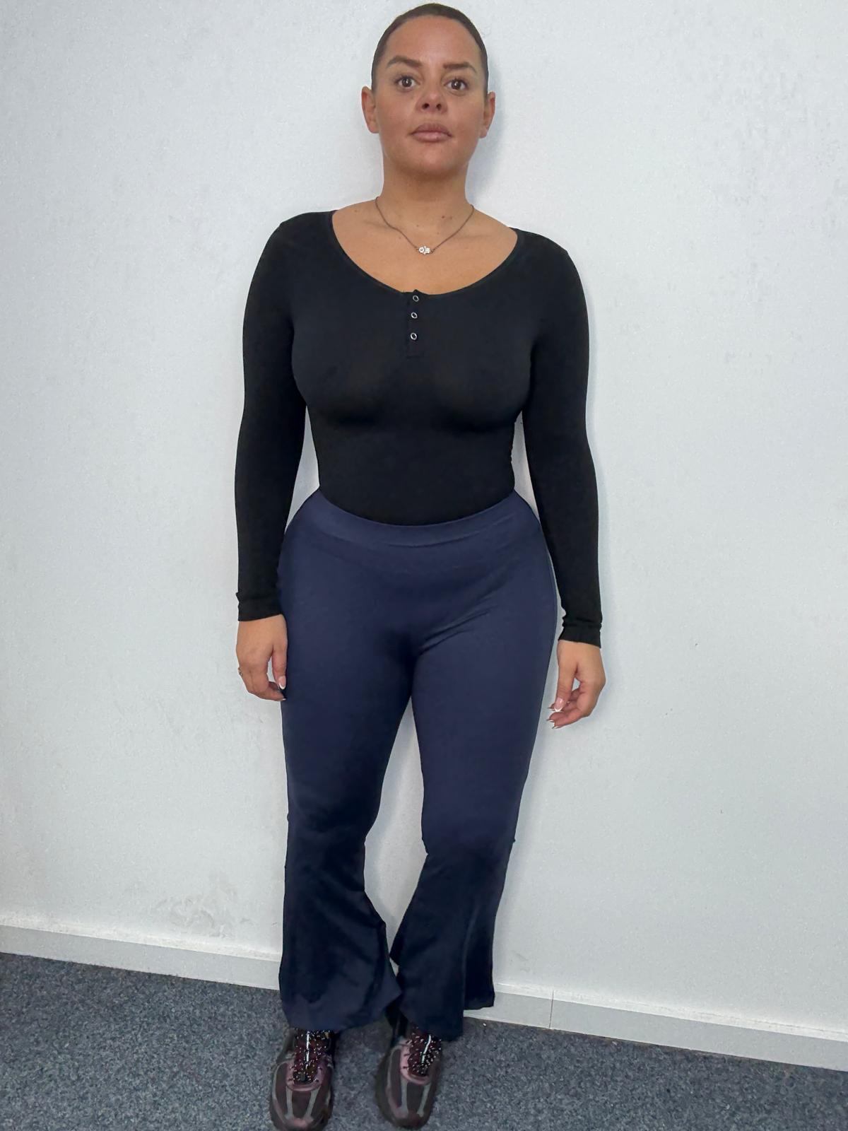 Introduce a versatile everyday essential to your plus-size range with these high-waist stretch flared trousers. Designed to sculpt and flatter, these trousers feature a smooth waistband, stretchy body-hugging fabric, and a gentle flare at the hem for a balanced, elongating silhouette. Their comfort-first design makes them perfect for casual wear, travel, errands, and athleisure styling. A bestselling staple for boutiques and online retailers seeking reliable, easy-to-style plus-size bottoms.