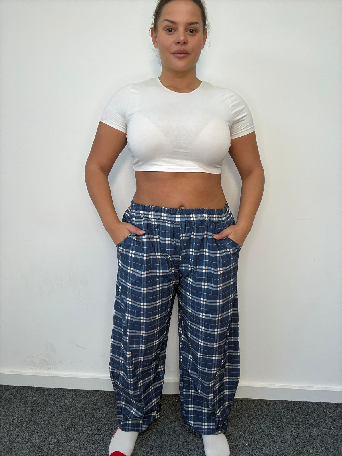 Plus Size Blue Relaxed Fit Check Trousers with Pockets x 2, 3 & 5 Pack Options