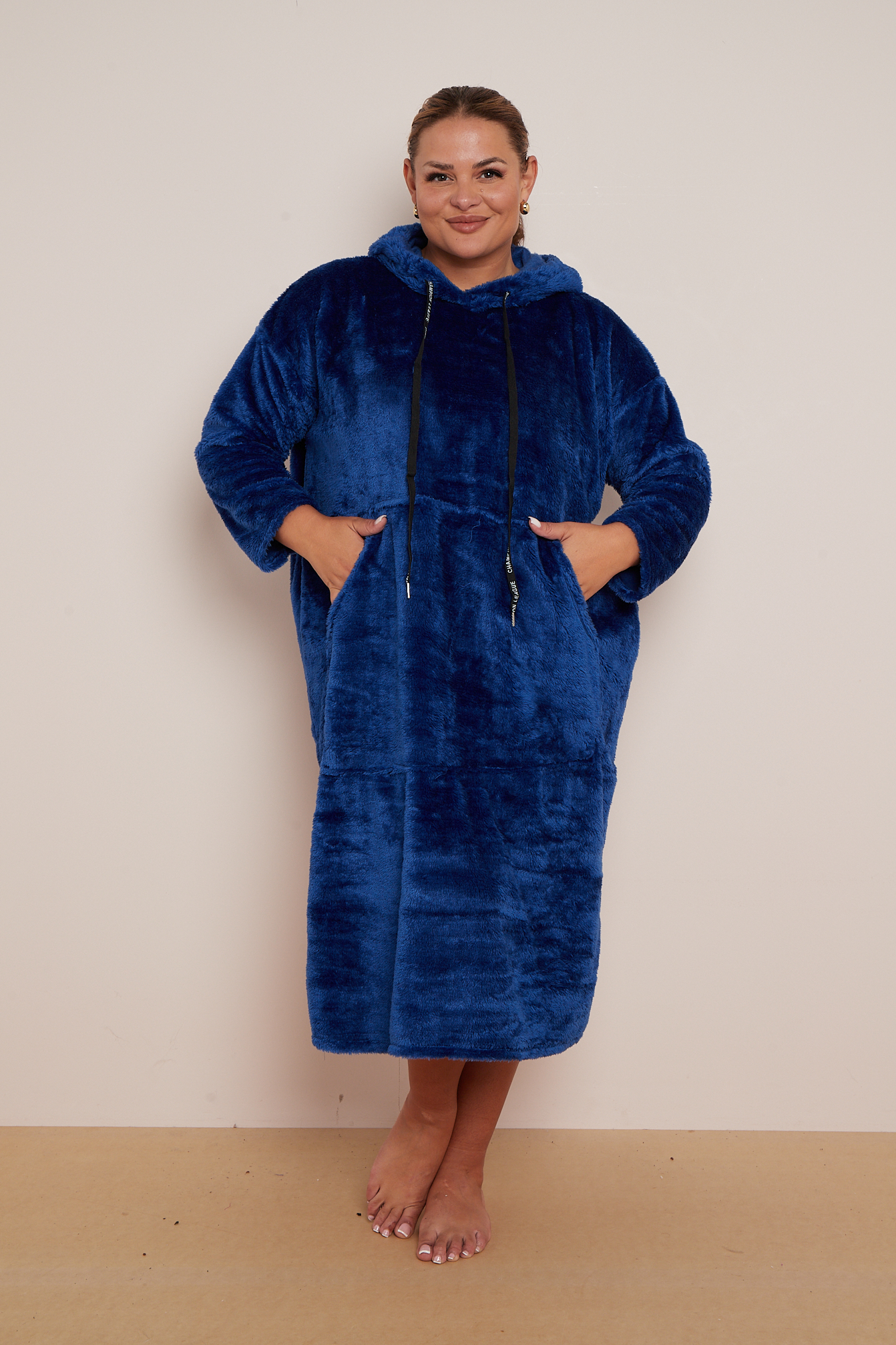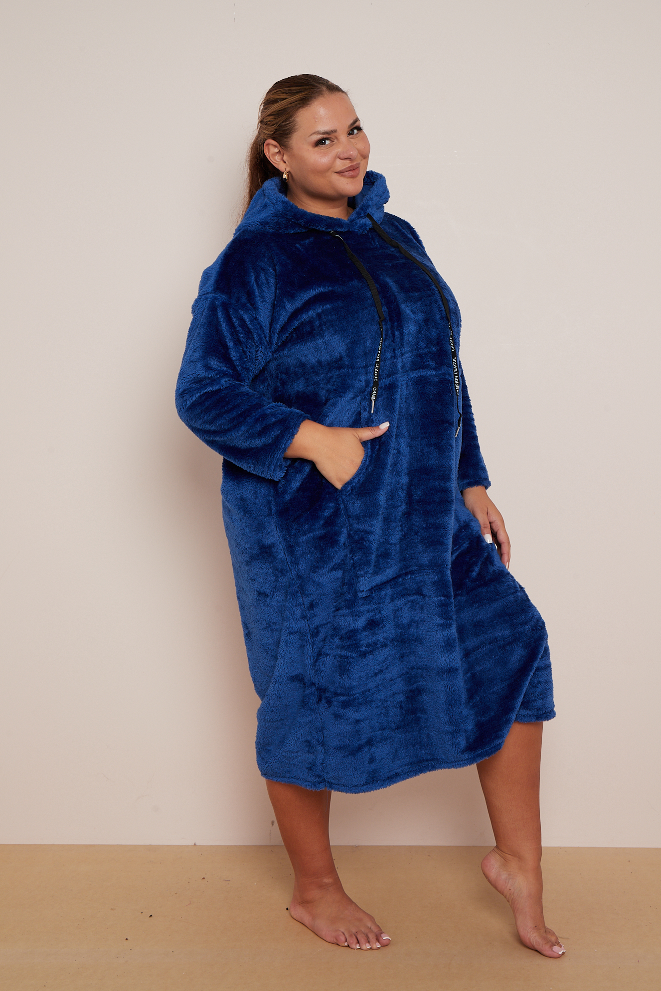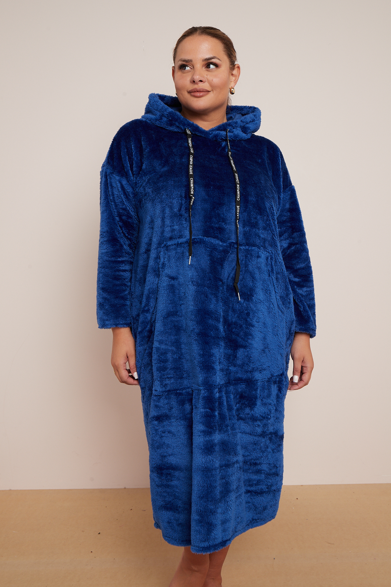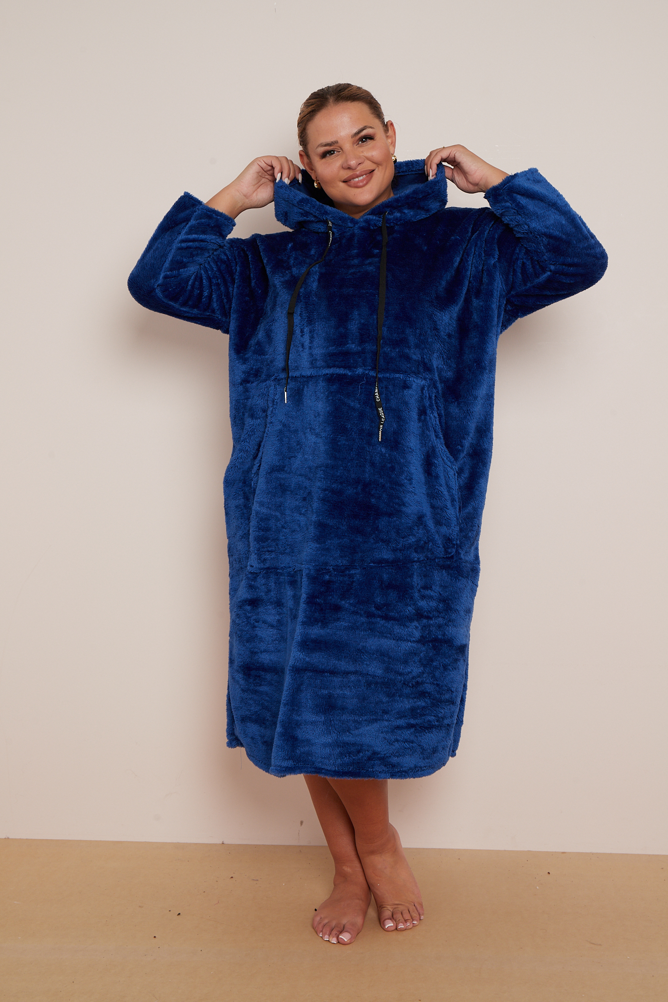 Plus Size Blue Teddy Oversized Blanket Hoodie With Pockets x 5
