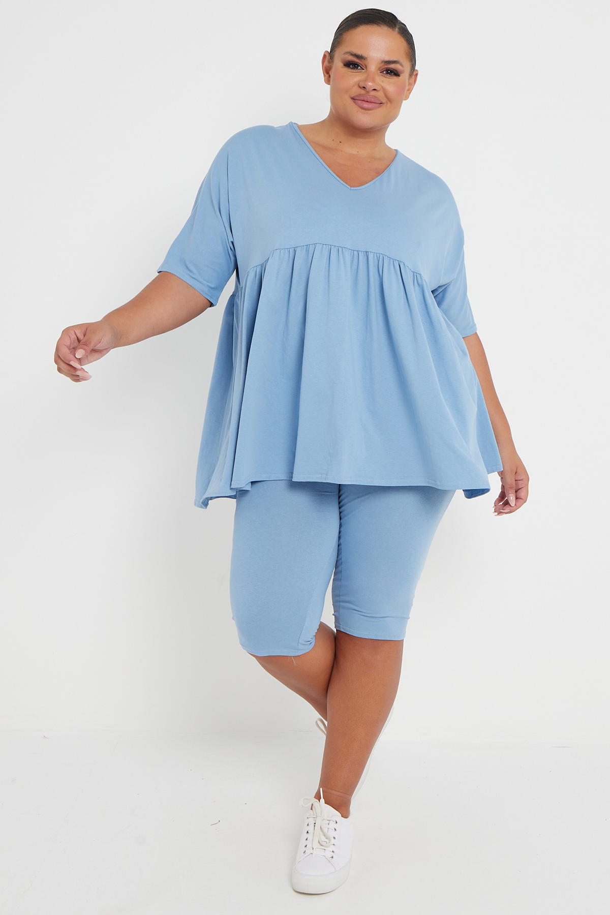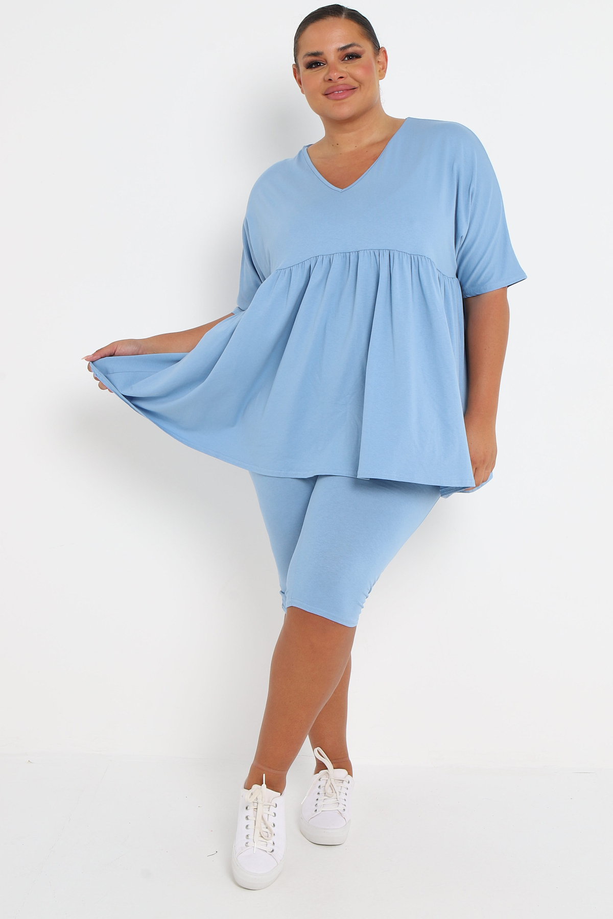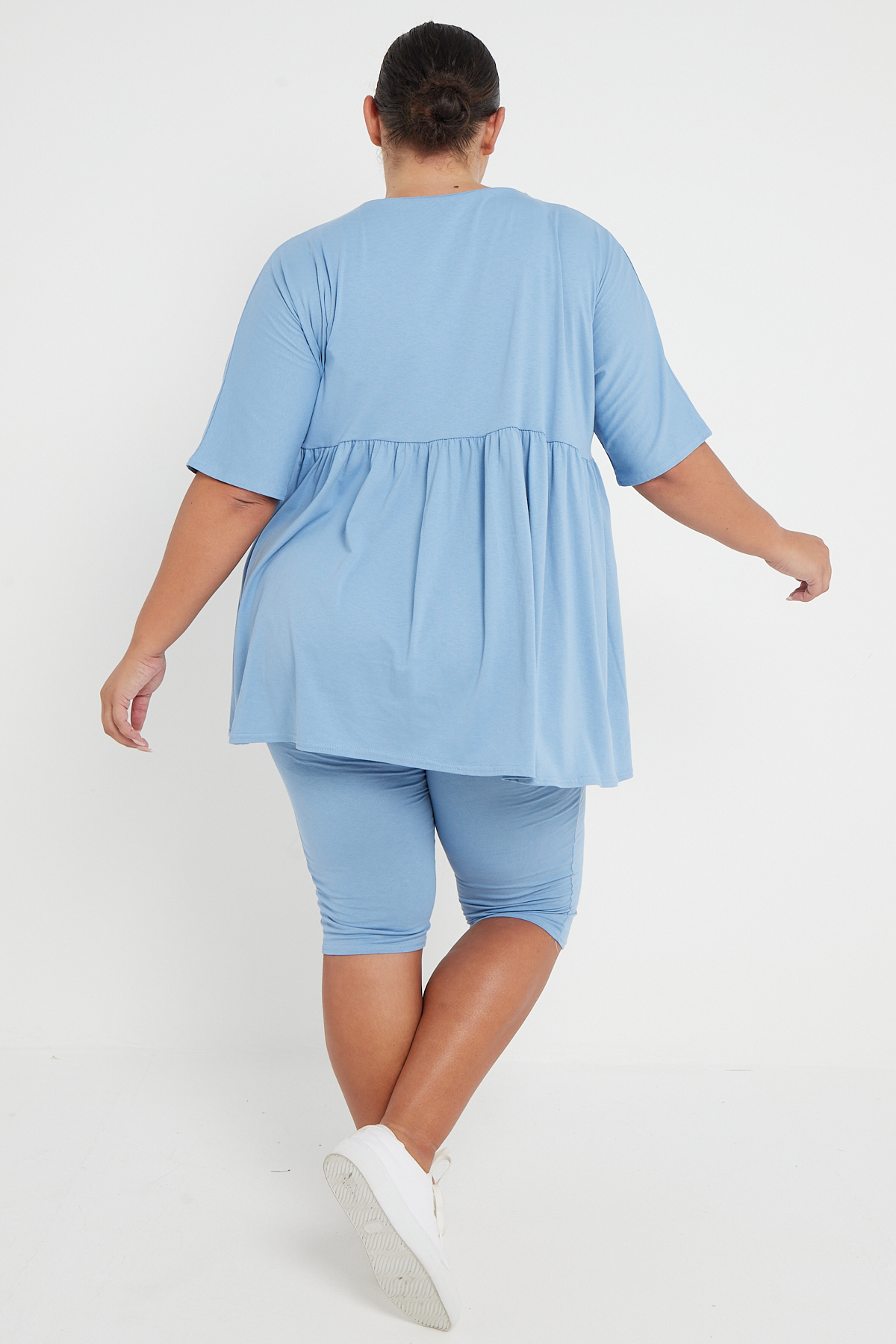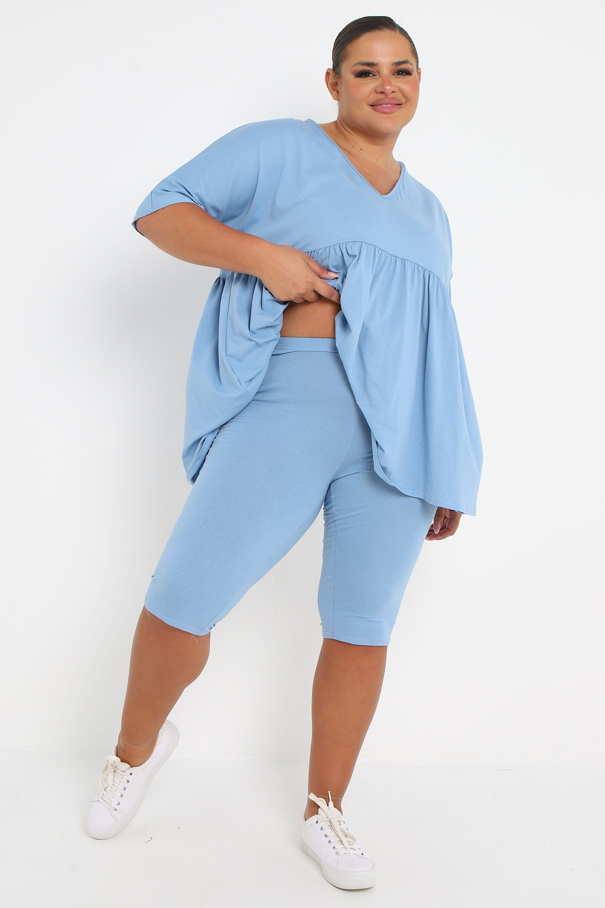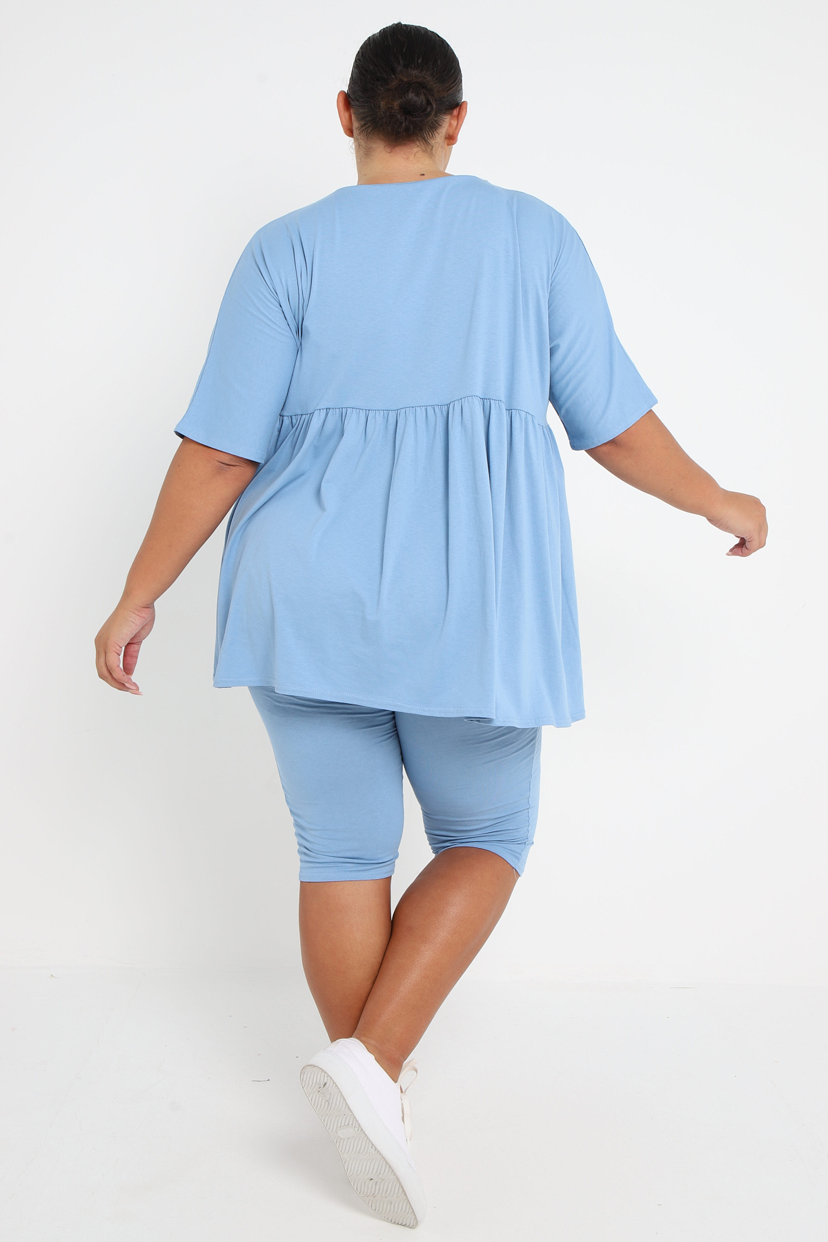 Plus Size Blue Two Piece Co Ord Set Short Sleeve Top With Matching Cycling Shorts x 5