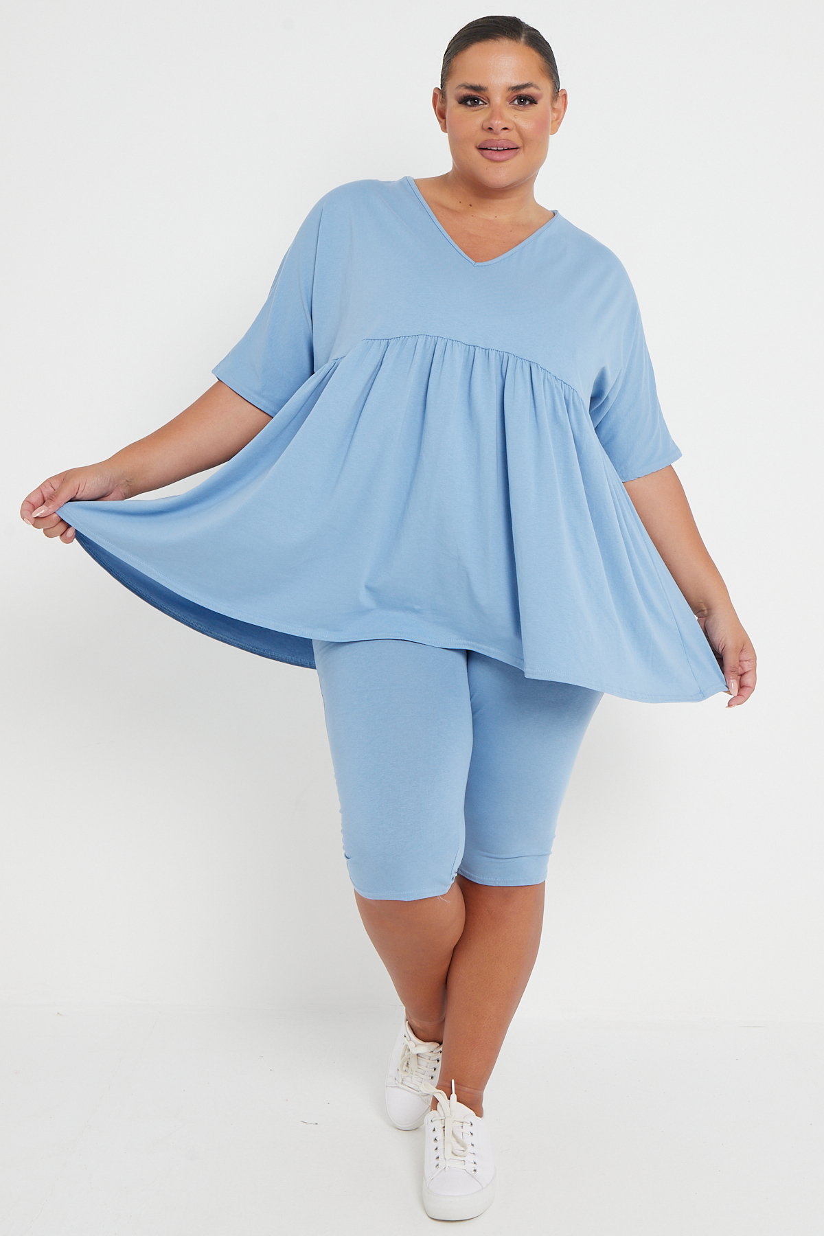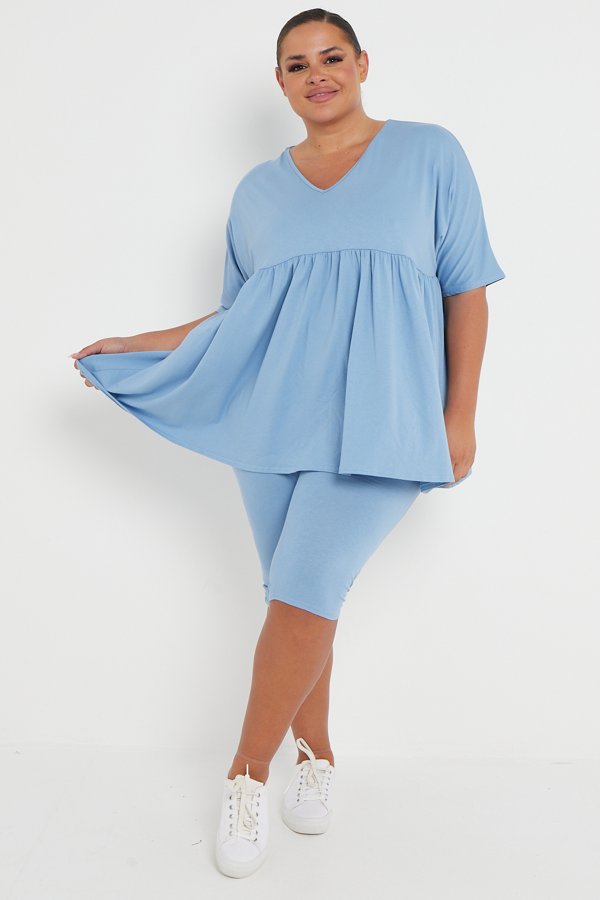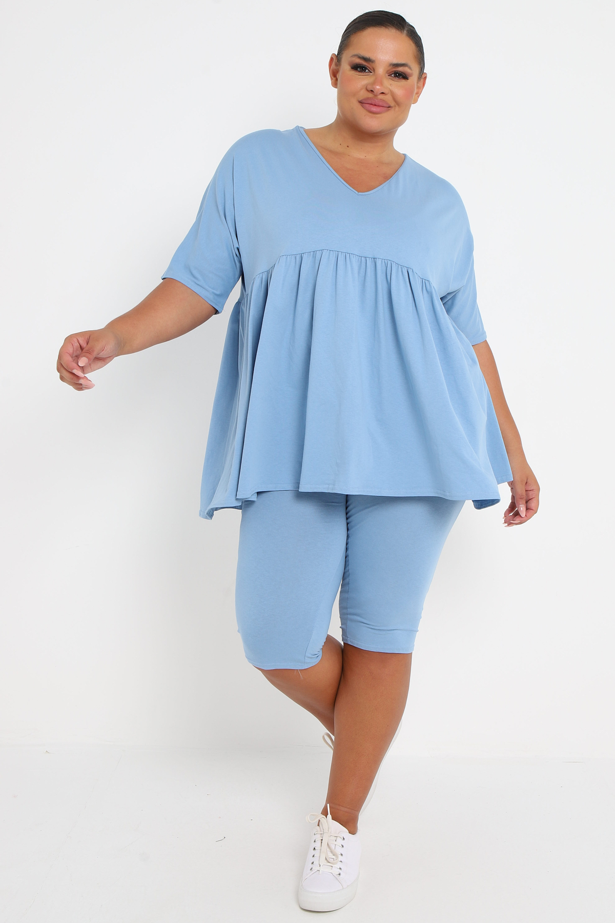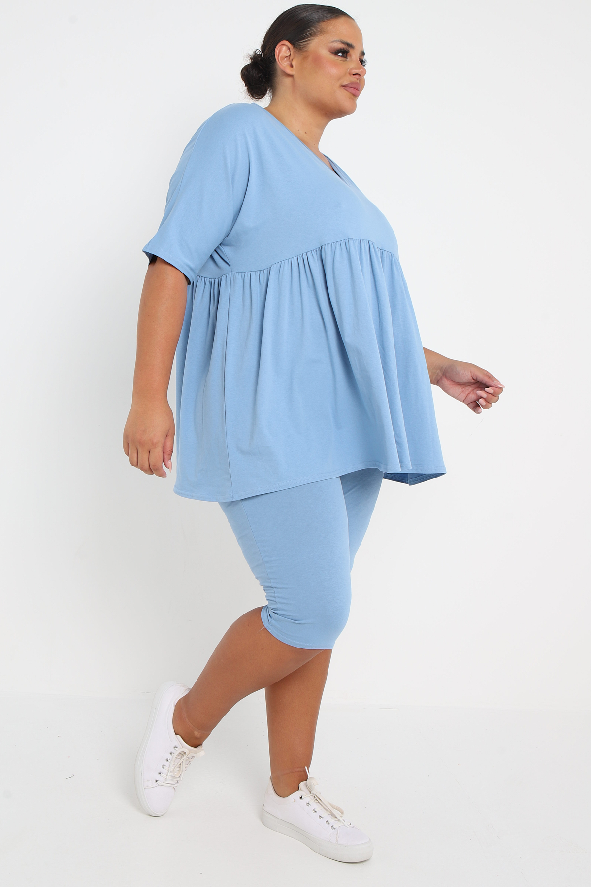 Plus Size Blue Two Piece Co Ord Set Short Sleeve Top With Matching Cycling Shorts x 5