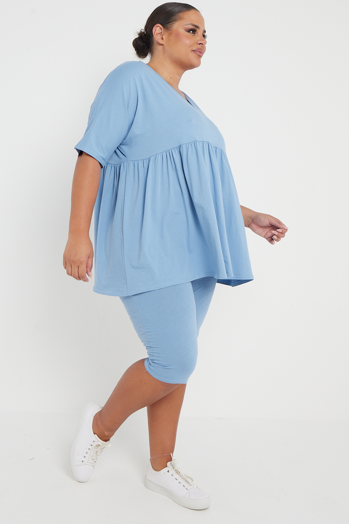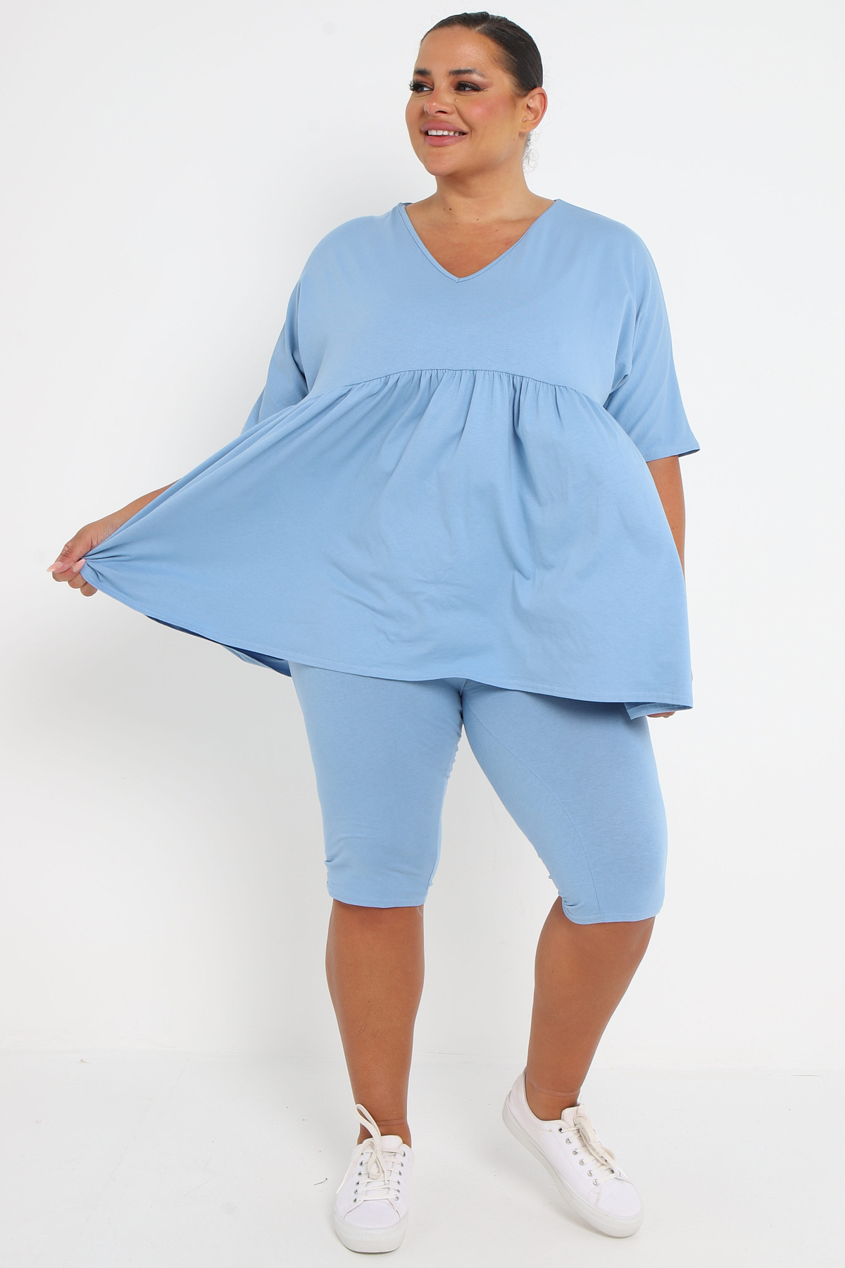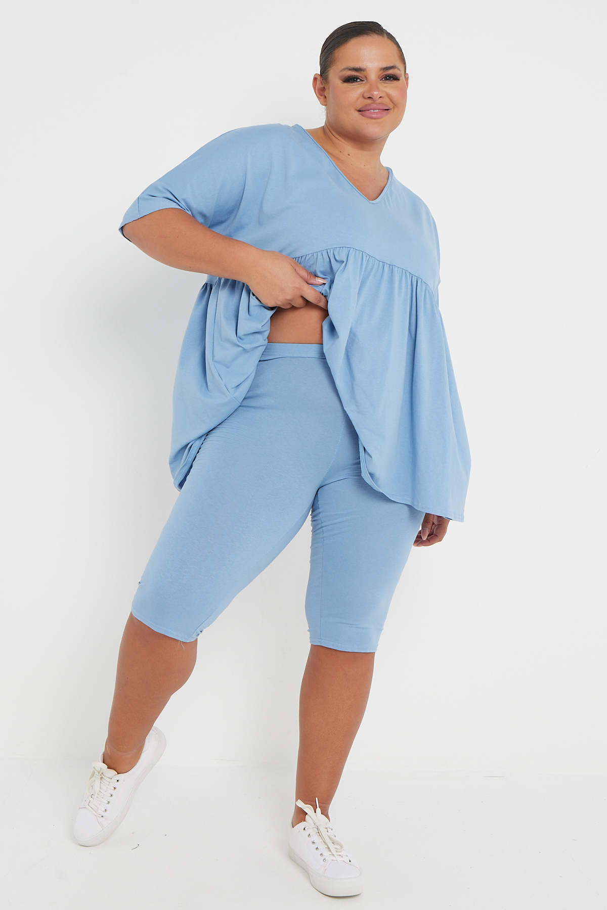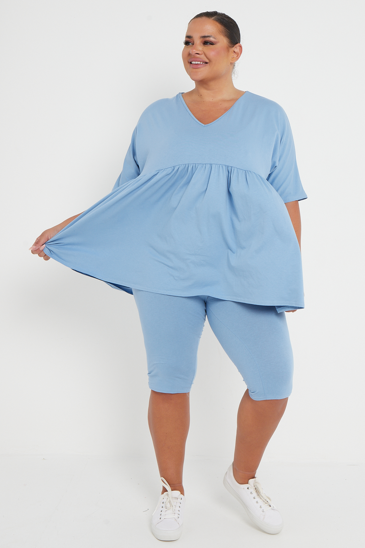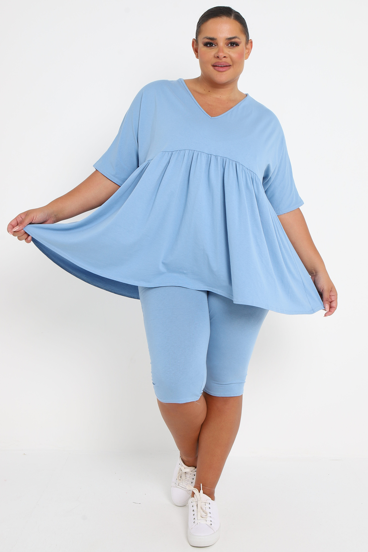 Plus Size Blue Two Piece Co Ord Set Short Sleeve Top With Matching Cycling Shorts x 5