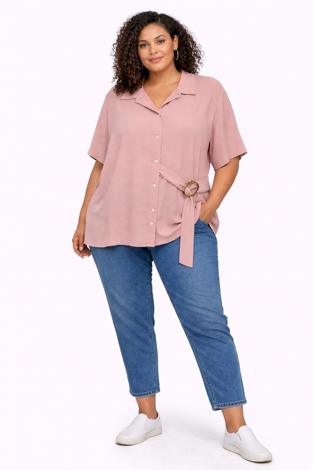 Plus Size Blush Pink Textured Belted Button-Through Shirt Top x 2, 3 & 5 Pack Options