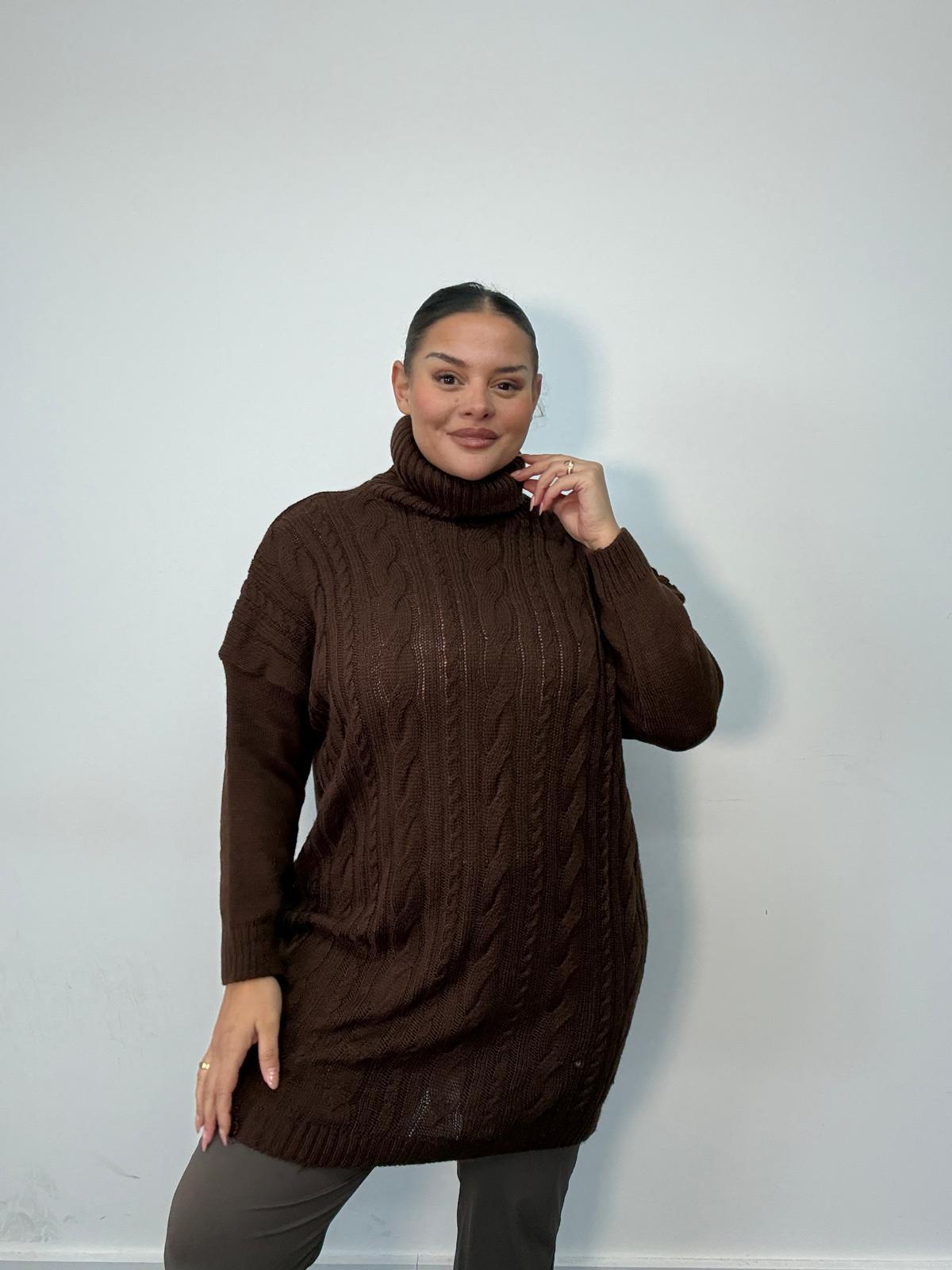 Plus Size Brown Cable Knit Roll Neck Jumper x 2, 3 & 5 Pack Options
