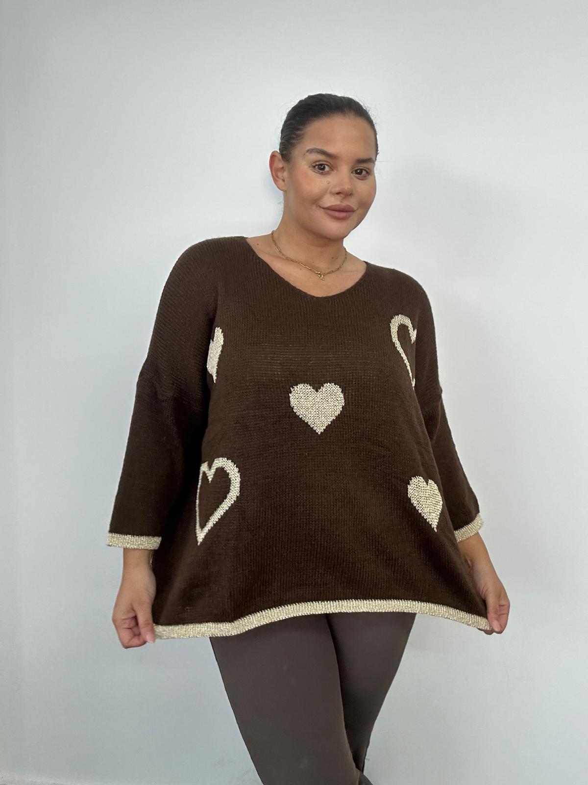 Plus Size Brown Metallic Heart Knit Jumper x 2, 3 & 5 Pack Options