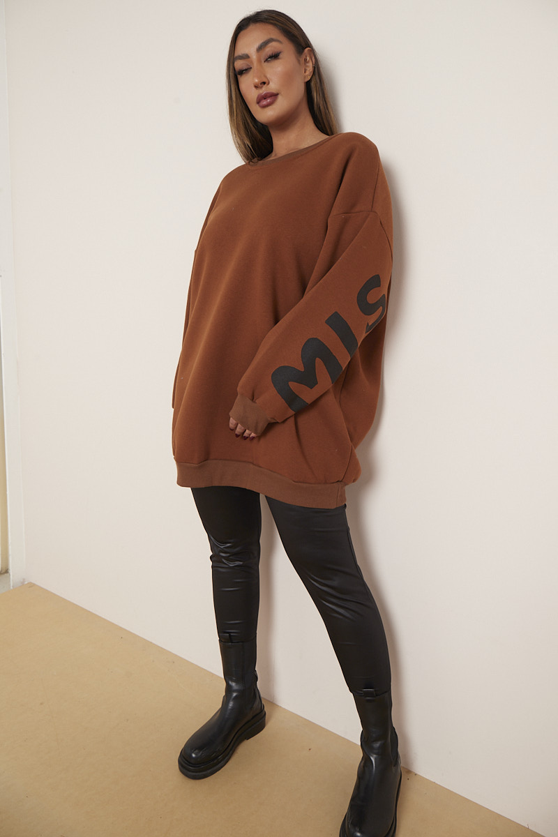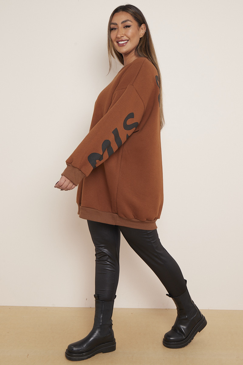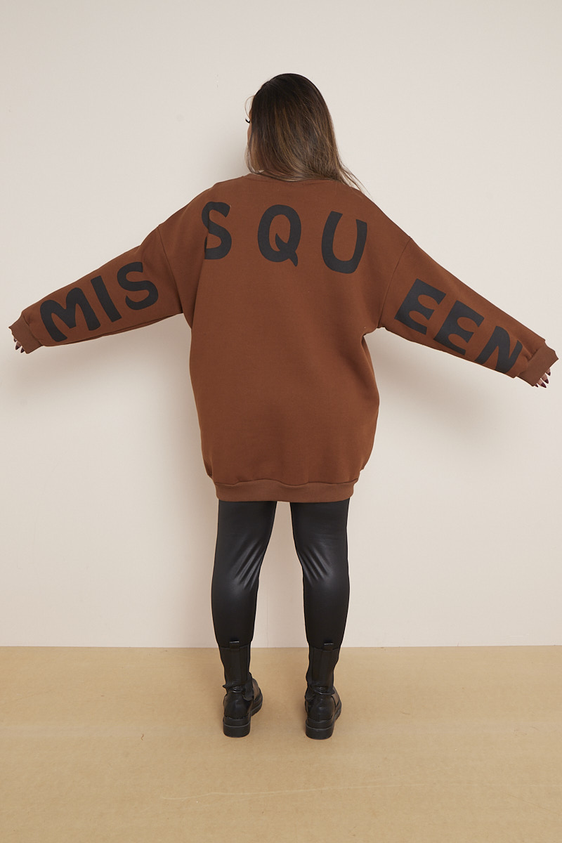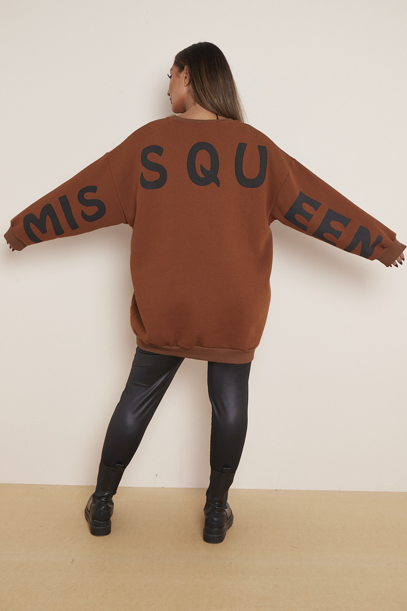Plus Size Brown Miss Queen Slogan Mid Length Sweatshirt x 5