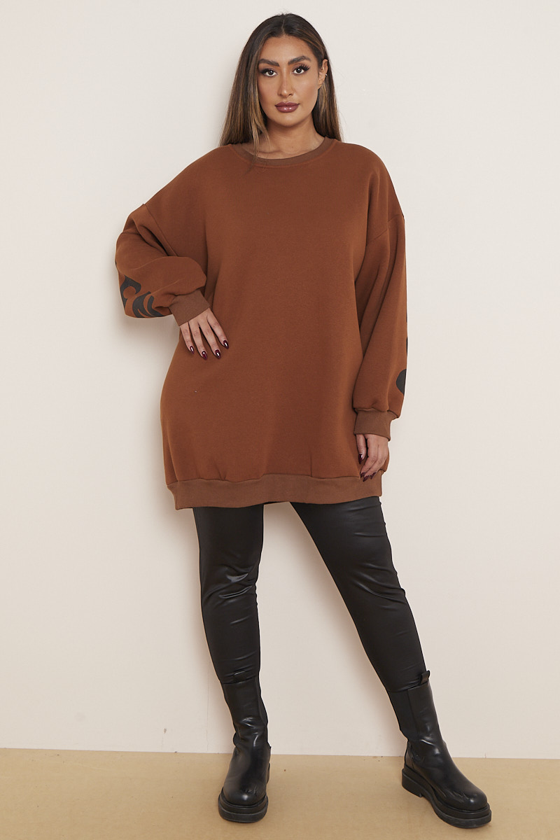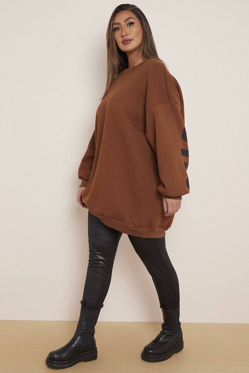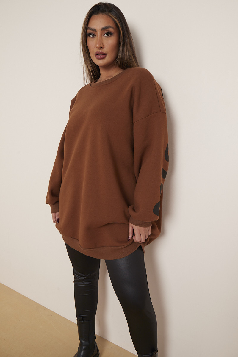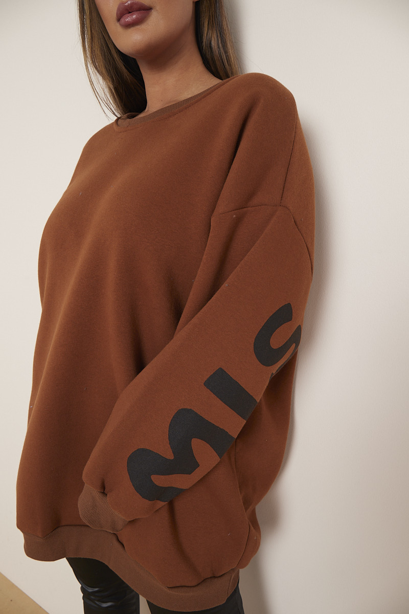 Plus Size Brown Miss Queen Slogan Mid Length Sweatshirt x 5