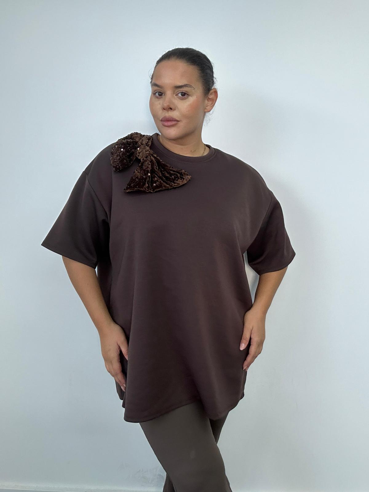 Plus Size Brown Sequin Bow Shoulder Top x 2, 3 & 5 Pack Options