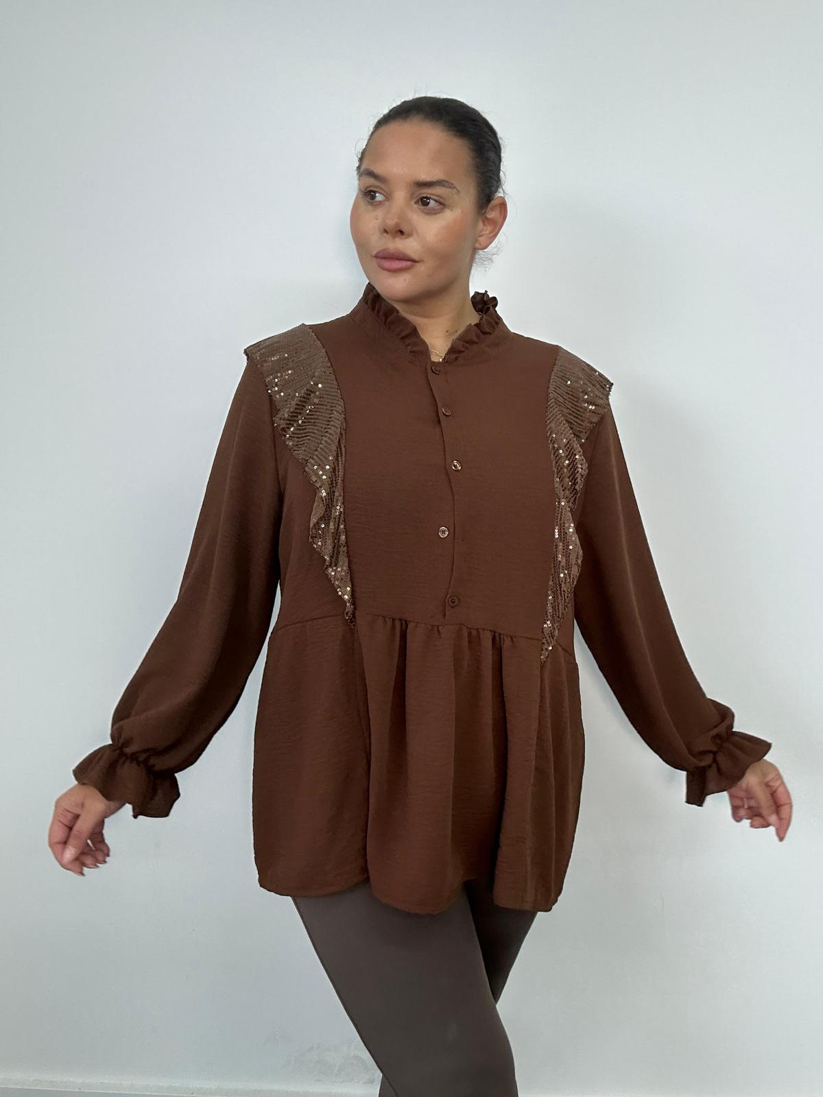 Plus Size Brown Sequin Frill Peplum Blouse x 2, 3 & 5 Pack Options
