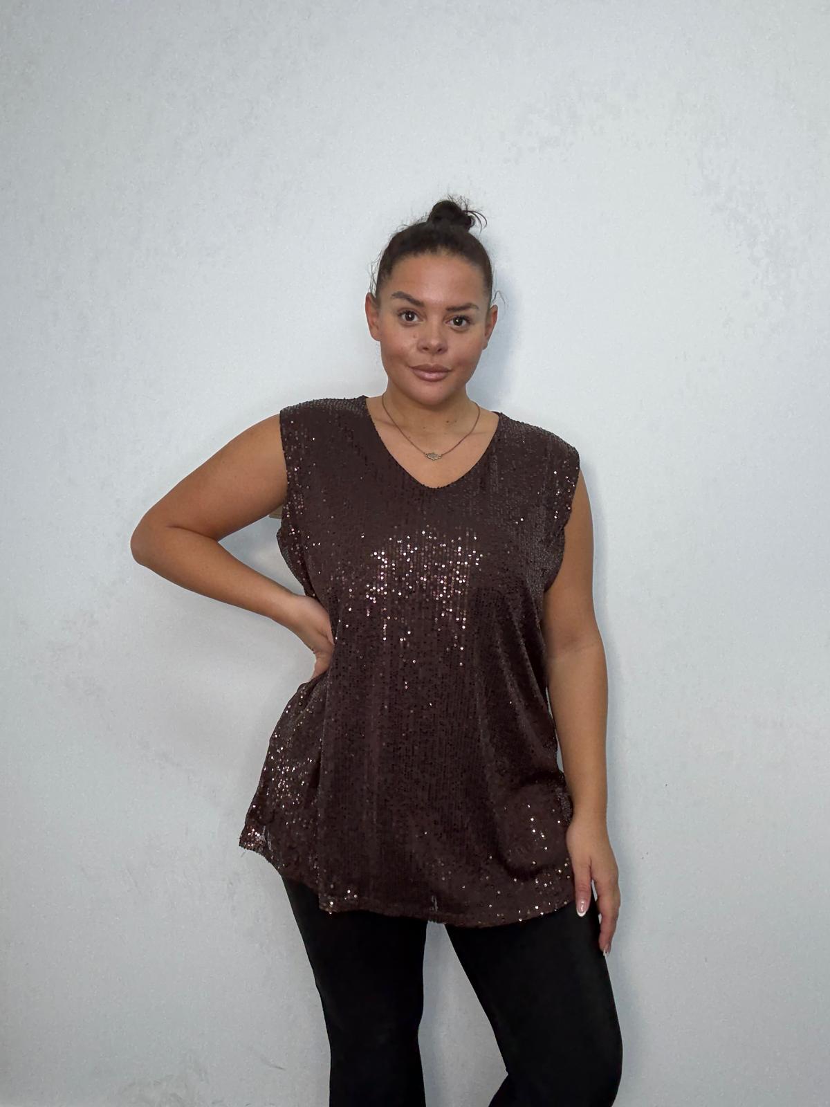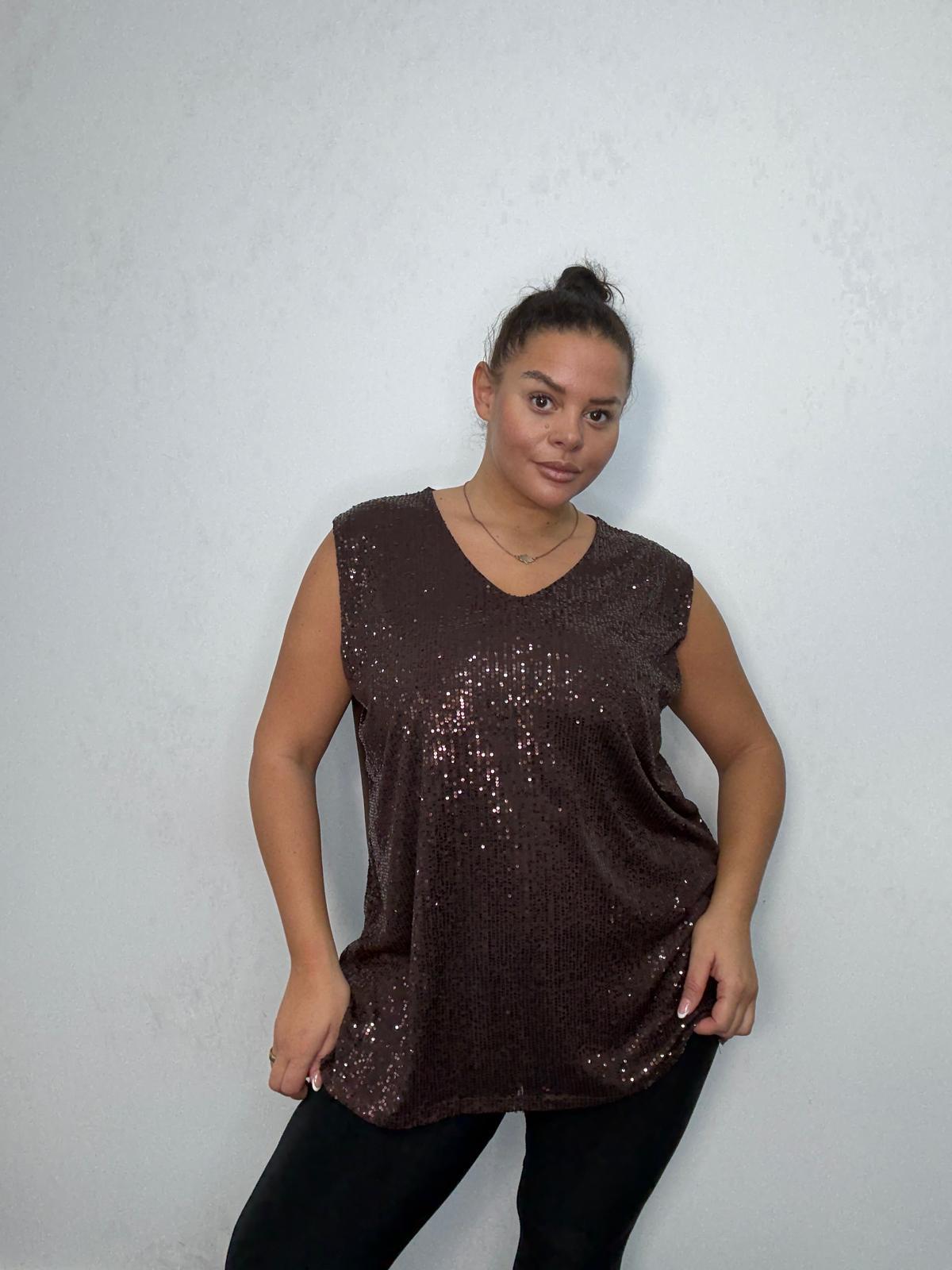 Plus Size Brown Sleeveless Sequin Tunic Top x 2, 3 & 5 Pack Options