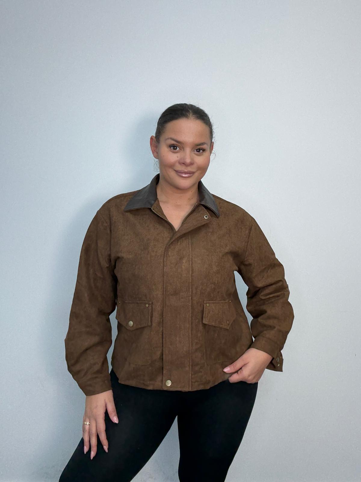 Plus Size Brown Suedette Utility Jacket x 2, 3 & 5 Pack Options