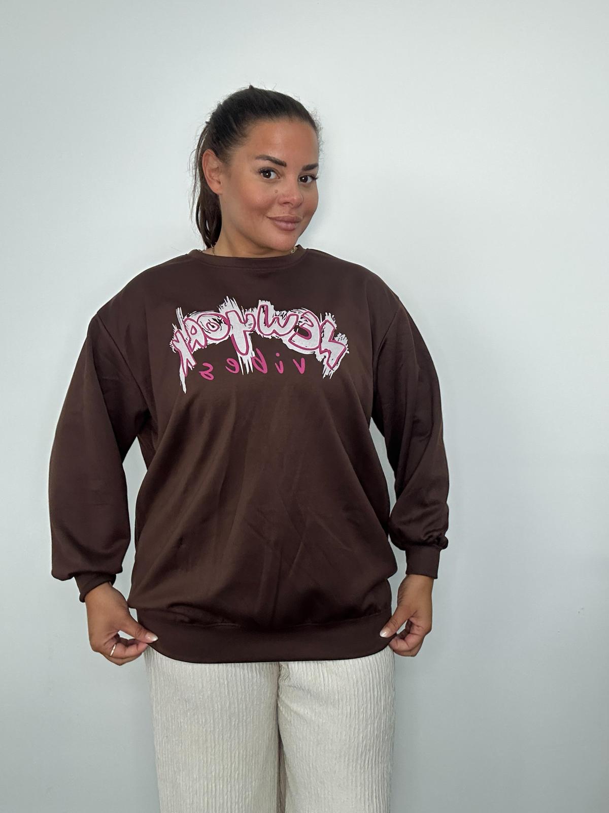 Plus Size Brown Sweatshirt with New York Vibes Print Curve Casualwear x 2, 3 & 5 Pack Options