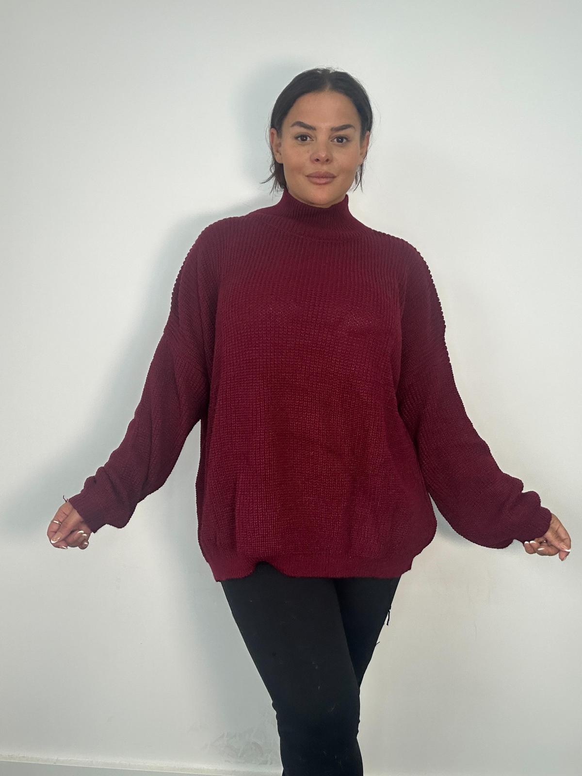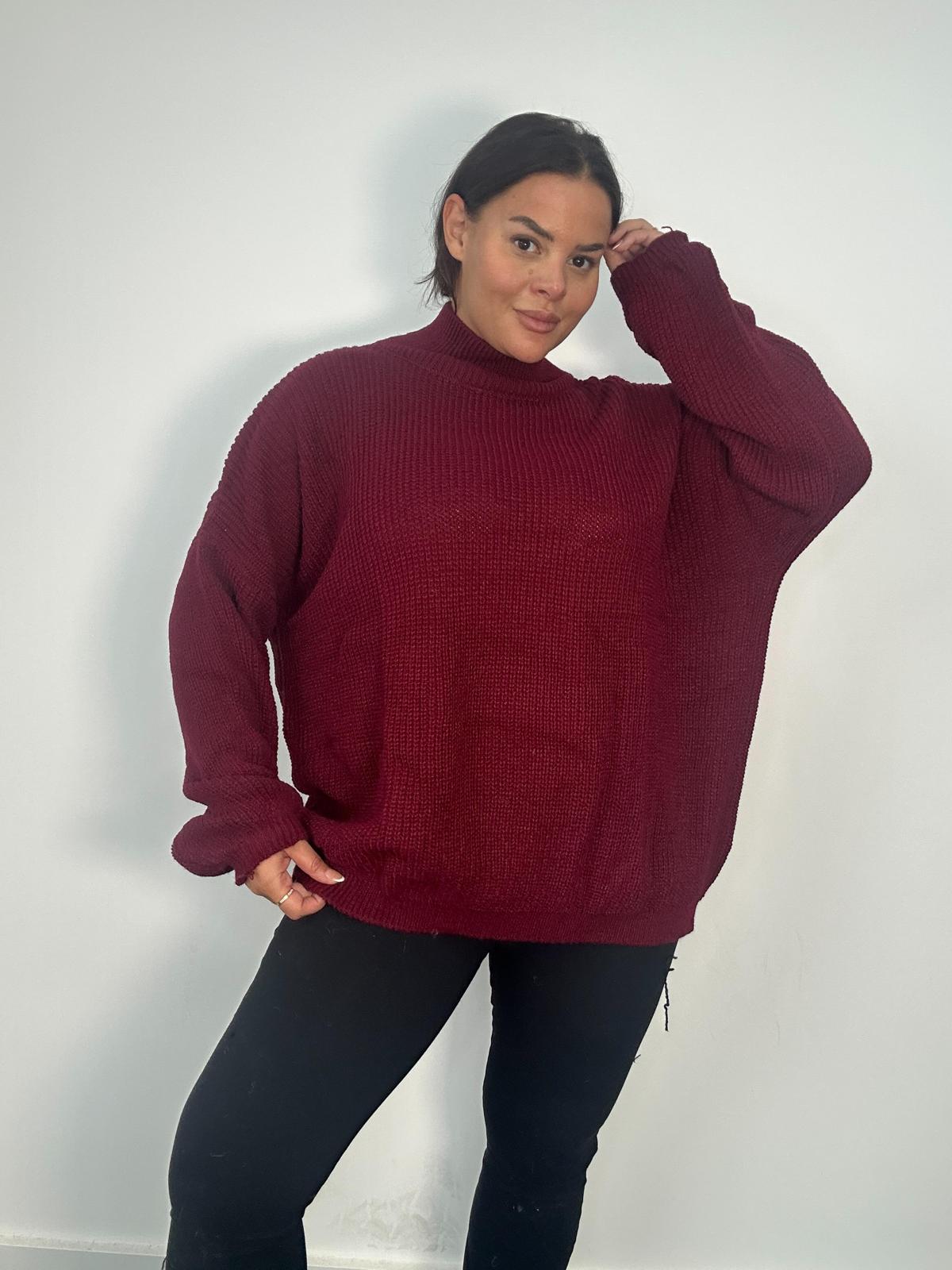 Plus Size Burgundy Oversized Roll Neck Knit Sweater x 2, 3 & 5 Pack Options