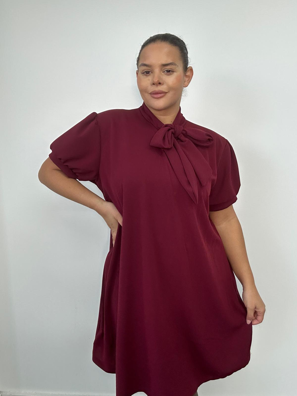 Elegant, feminine, and effortlessly flattering this Plus Size Puff Sleeve Bow Neck Dress is a timeless addition to your boutique collection. It features a soft flowy silhouette, short puff sleeves, and a statement bow tie neckline for a chic, polished look. A must-have wholesale piece for plus-size retailers seeking versatile, stylish dresses that blend comfort with class.