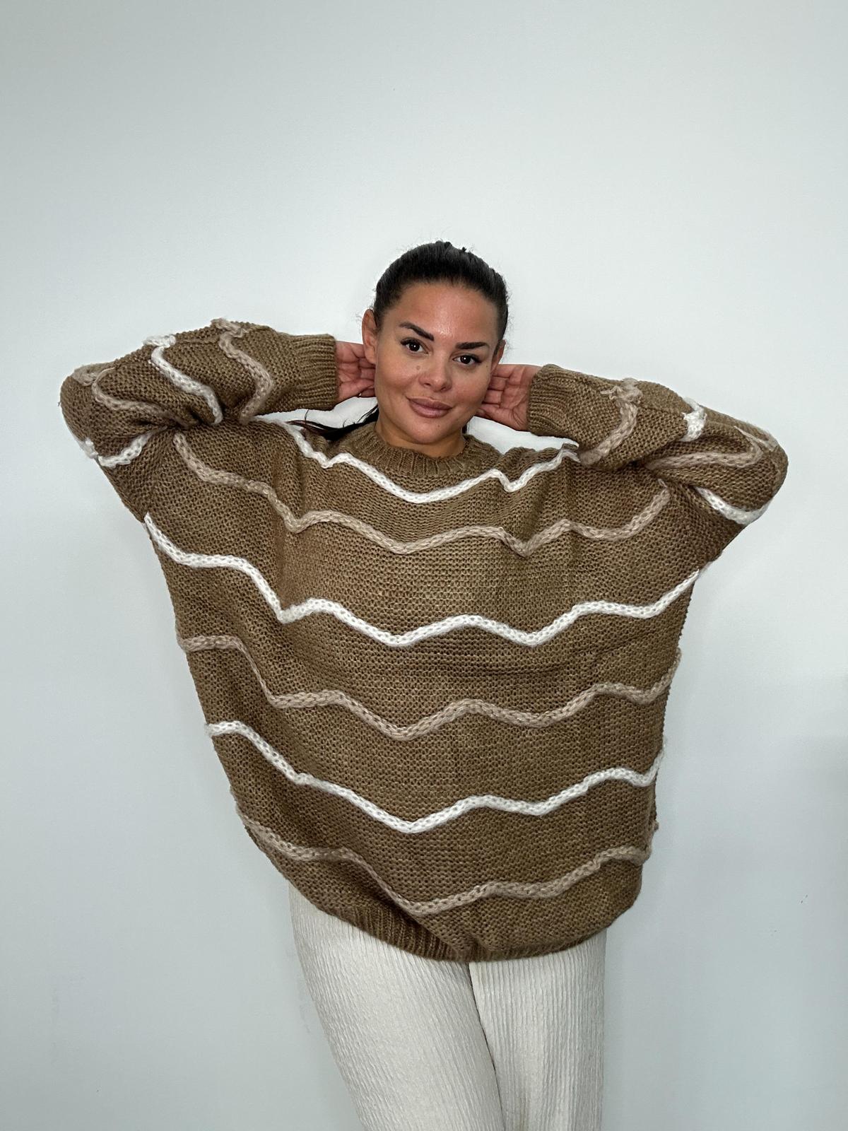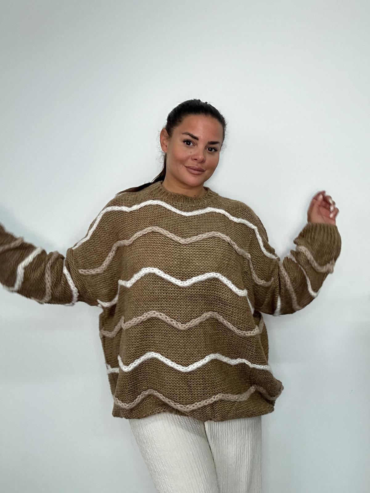 This Plus Size Knitted Jumper is a stylish and cosy addition to any plus size wardrobe. Featuring a relaxed fit and long sleeves, it is detailed with a wave stripe pattern for a modern twist on classic knitwear. Made from soft knitted fabric, it offers comfort, warmth, and versatility, perfect for layering during cooler seasons. A must have wholesale option for UK retailers looking for fashionable, curve friendly knitwear.