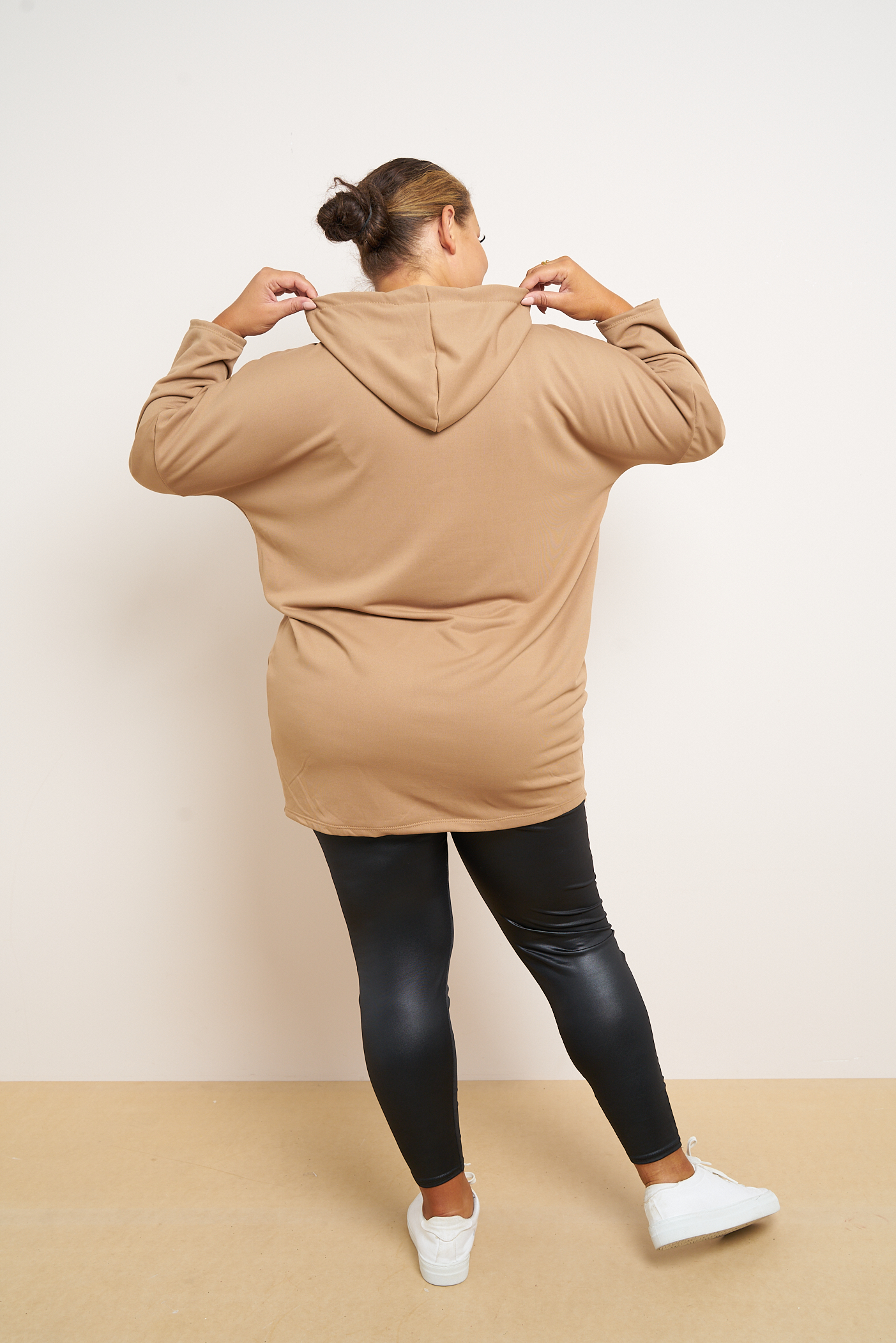 Plus Size Camel Zip Front Sequin Strip Detail Hooded Top x 5